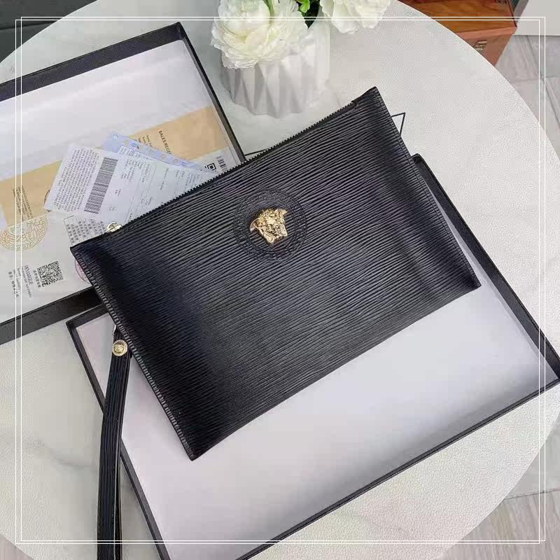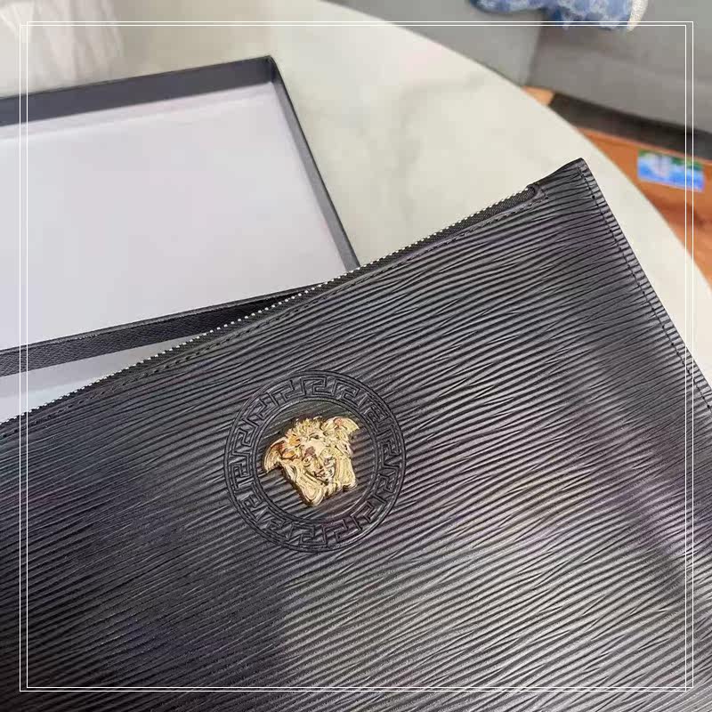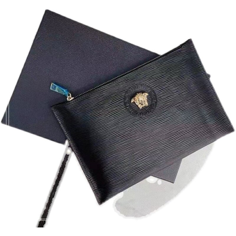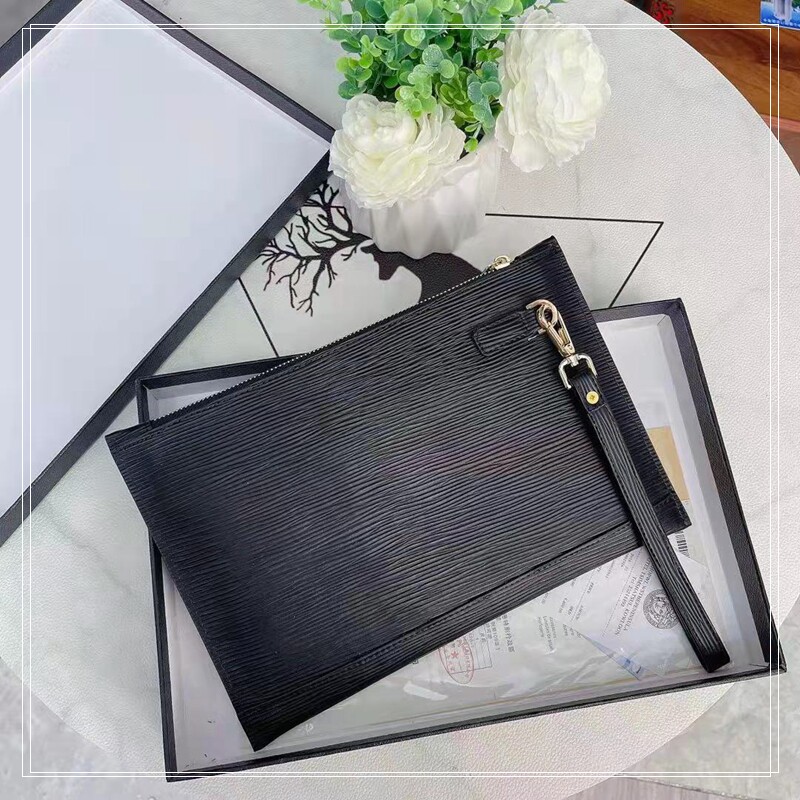 New Men's Water Corrugated Cow Leather Letters Enveloping Handbags Black Embossing Casual Bag Handgrip Bag Tide Pack Genuine Leather Tide