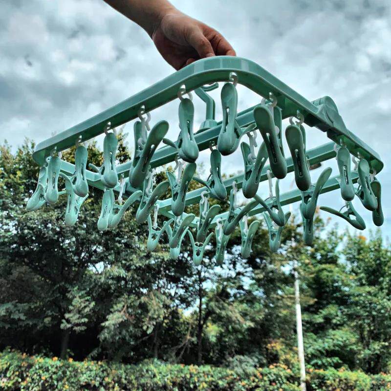 Thickened and upgraded multi-functional 32-clip clothes folding hanger underwear socks drying rack
