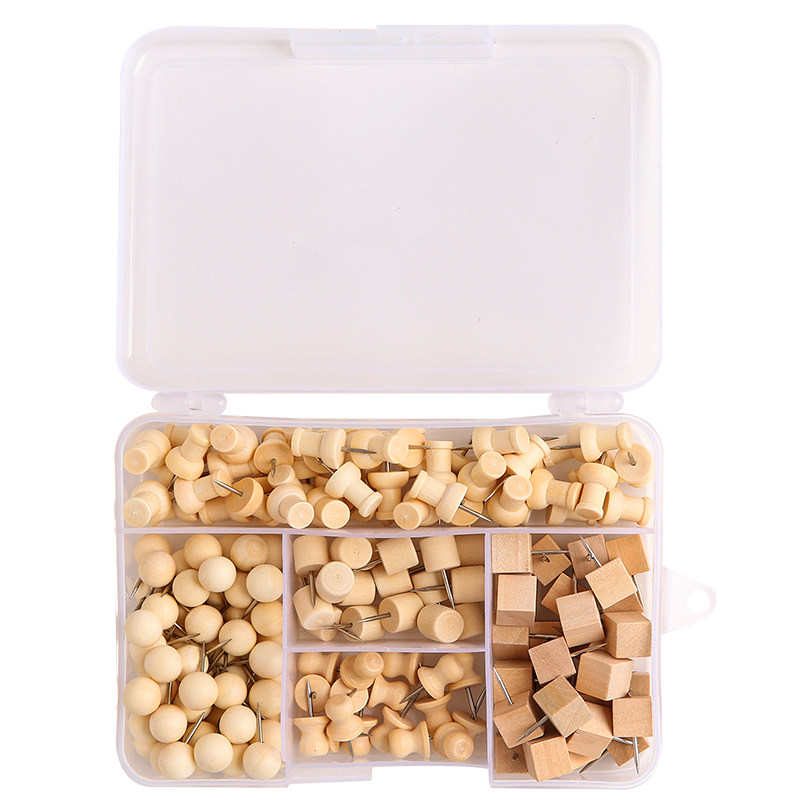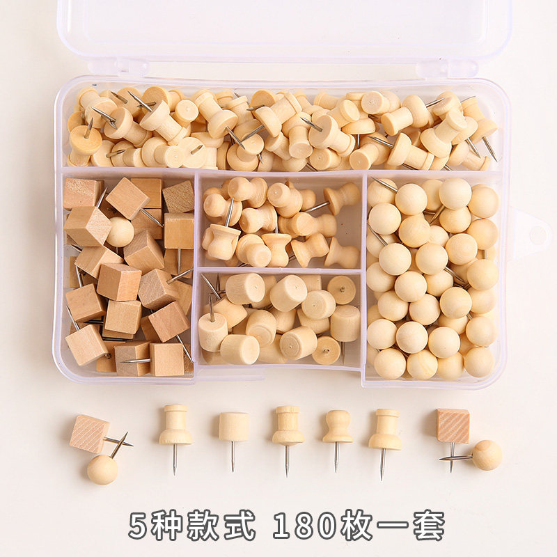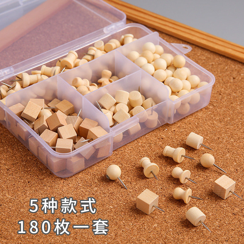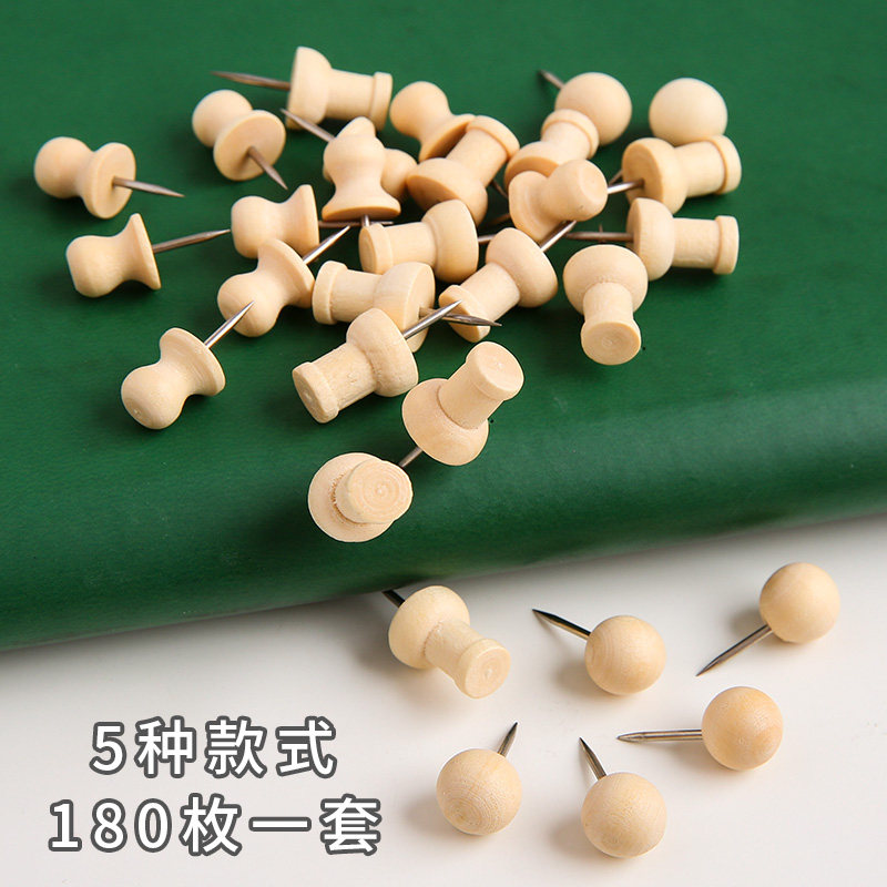 180 pieces of log thumbtack set 5 styles Original wooden I-shaped nail boxed cork board special wooden thumbtack press nail big head nail wood multi-functional diy felt photo wall art nail