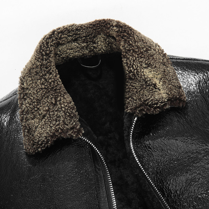 Winter new original ecological fur one man short lapel leather jacket locomotive jacket sheep fur jacket