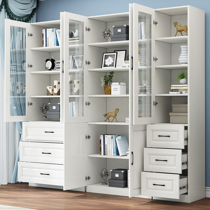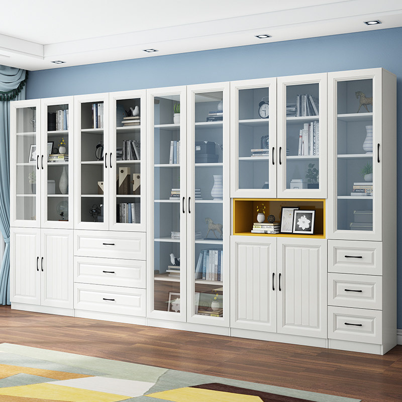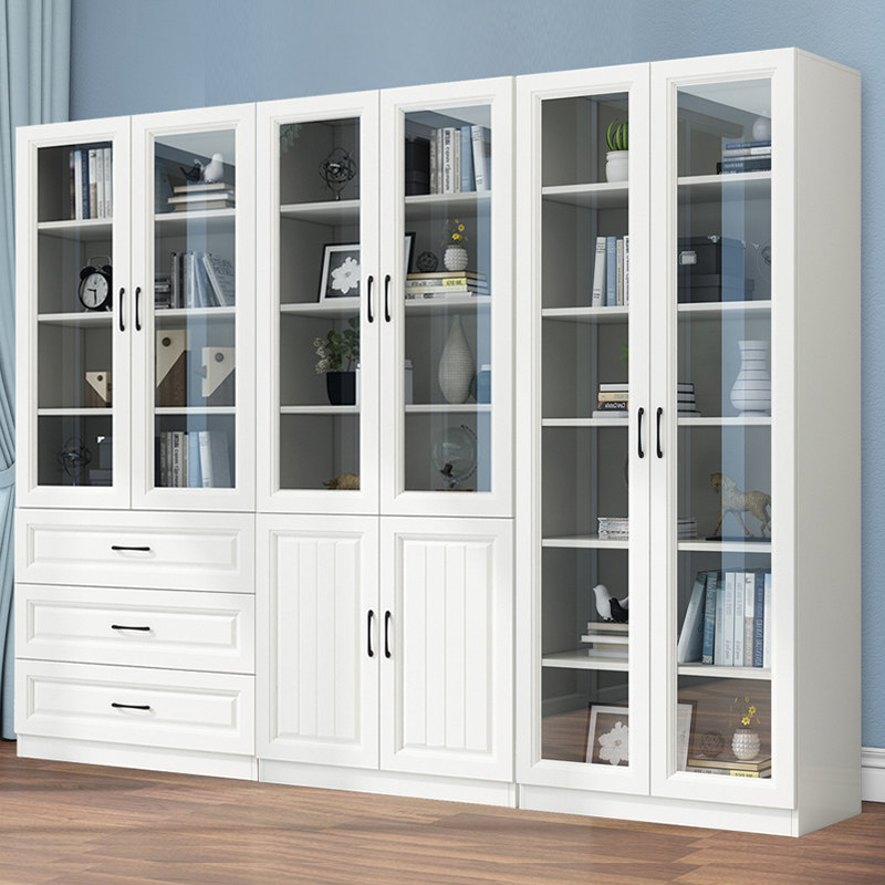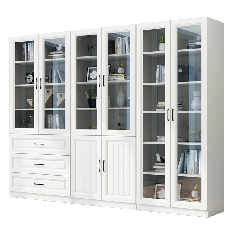 Solid wood bookcase floor-to-ceiling home shelf modern minimalist glass door bookshelf integrated against the wall children's storage cabinet