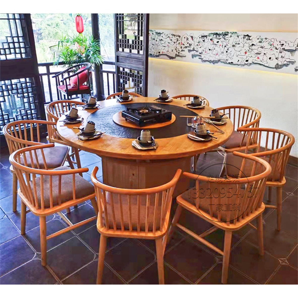 Fire Pot Shop Marble Hotpot Table induction cookery integrated commercial Barbecue Table Barbecue Solid Wood Dining Table And Chairs Commercial
