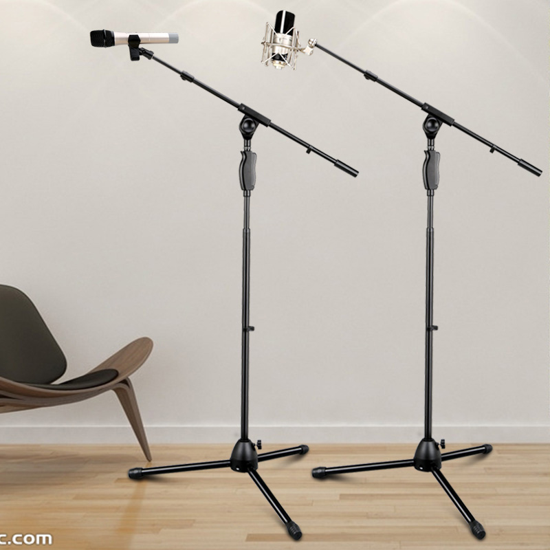One-hand press lifting microphone stand floor-standing three-legged microphone stand professional performance mobile phone live broadcast microphone stand