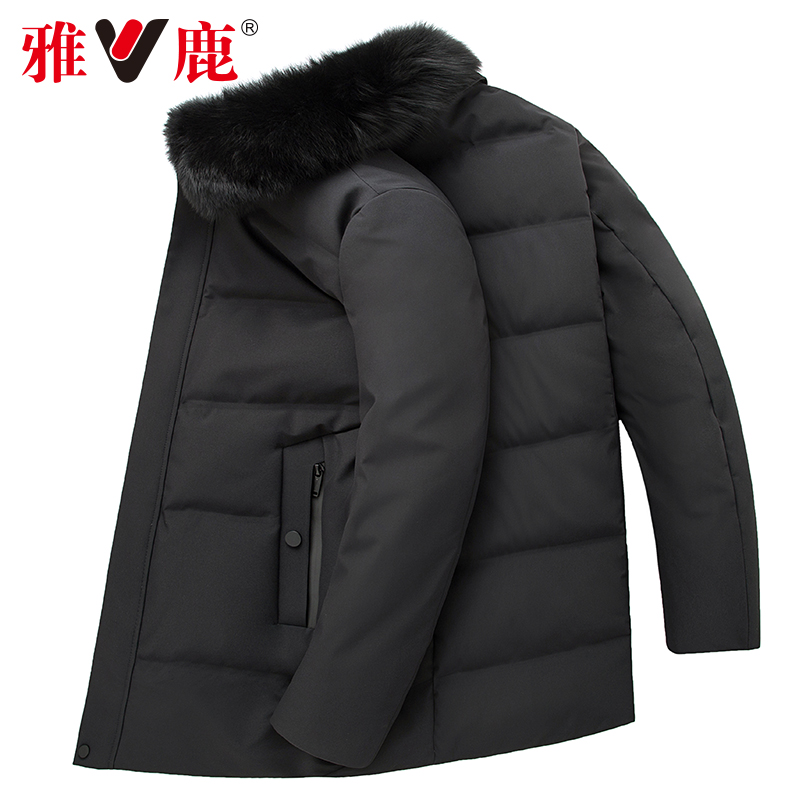 Yalu New Middle and Old Feather Costume Heating Men's Costume Middle and Long Edition Mao Link Father Father Father Father Father Father