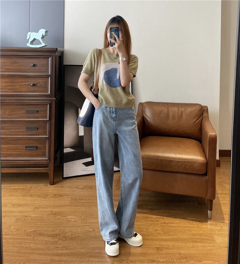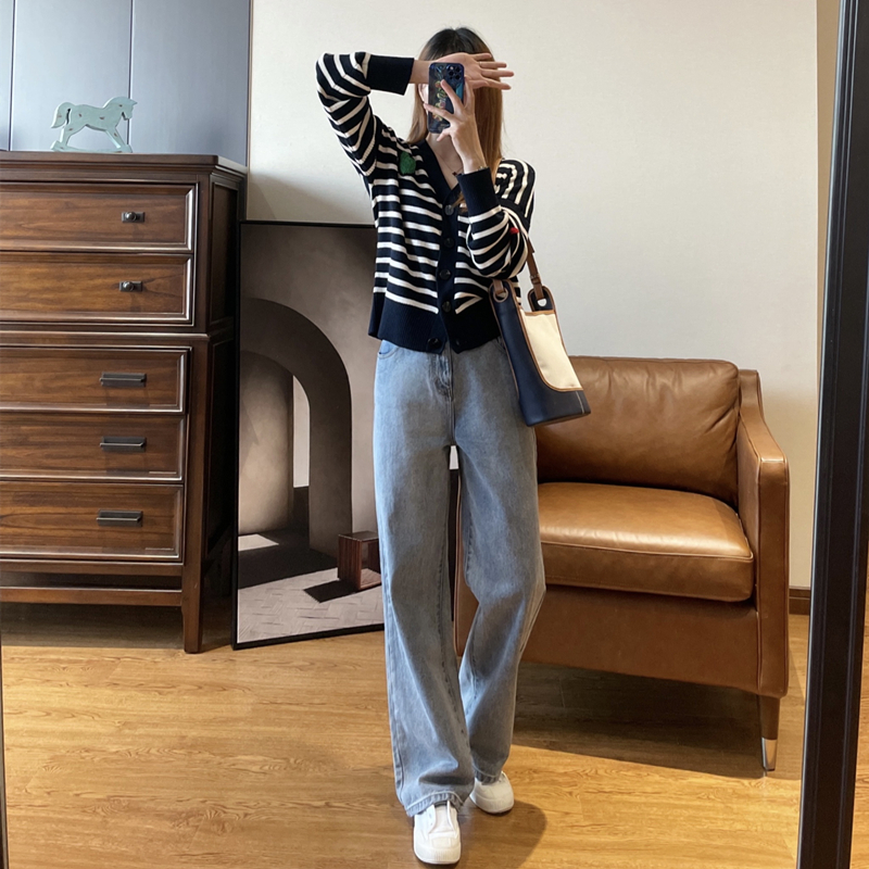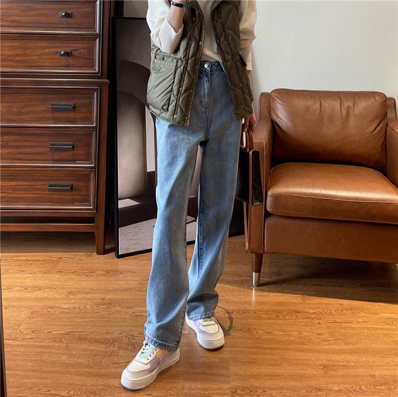 1 m 8 GAS FIELD DU HOME LIGHT BLUE STRAIGHT DRUM JEANS WOMAN HIGH WAIST WIDE PANTS CASUAL LOOSE SPRING AUTUMN 2021