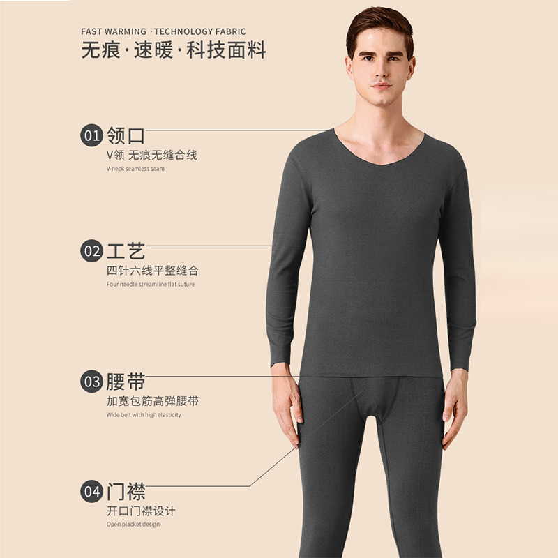 Heating clothes men Cavet without mark Velvet Fever winter close-fitting set of undershirt autummy sweatpants Men's suit