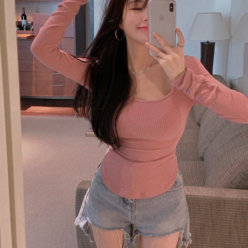 Pink irregular design sensitivity of the crowd's tops and fit the wear of tight long sleeve blouse early autumn