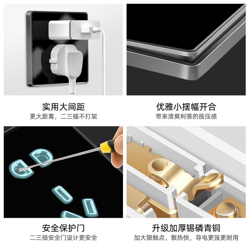 Two open single control three holes (16A) 118 three fifteen holes four open single-control TV TV computer open three holes (16A) open and multi-control open double cut computer Four open double cut blank cover plate slant 5-hole three