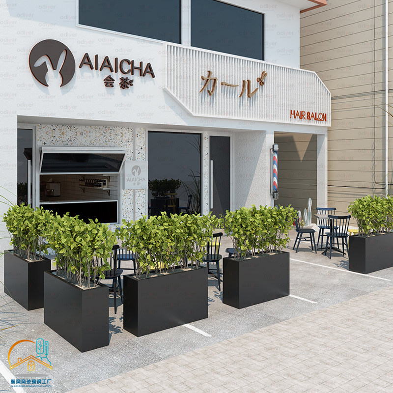 Outdoor Fibreglass Flower Case Combined Rectangular Flower Pot Green Planting Sample House Display Center Rhombus Flower Altar Commercial Street Square Flower