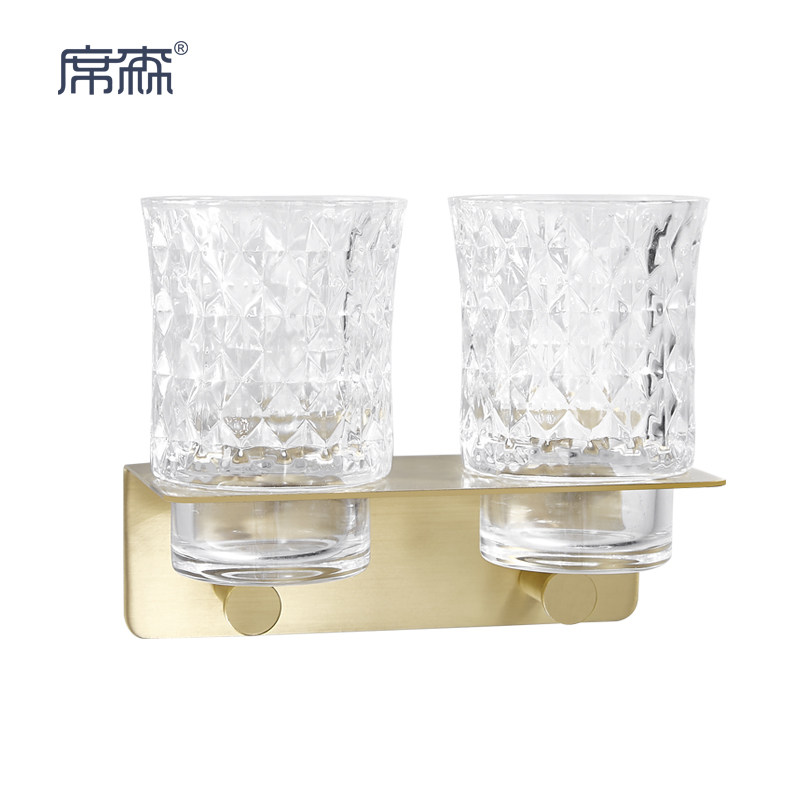 Light luxury brass wall hanging toothbrush holder all copper gargle cup holder makeup room free punch shelf double cup rack tooth rack