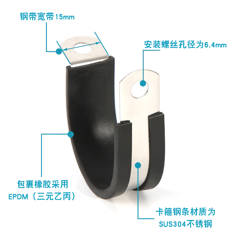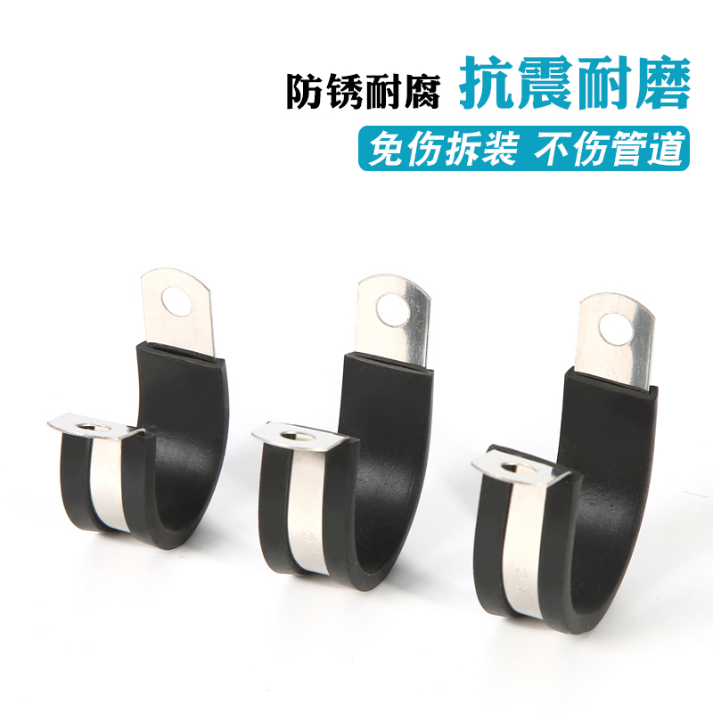 Stainless steel hose hoop 304R type rubber shock-absorbing tube clamp cable wire clamp water pipe fixed clamp