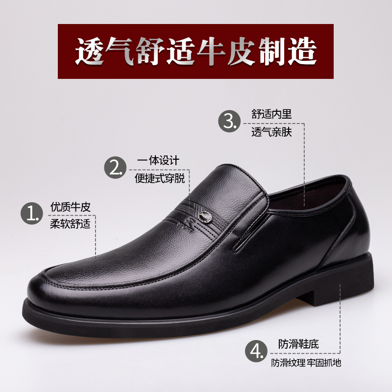 Leather Shoes Men Business Positive Dress 2021 New Middle Aged Soft Bottom Bull Leather Men's Dad Shoes Classic Corium Leather Men Shoes