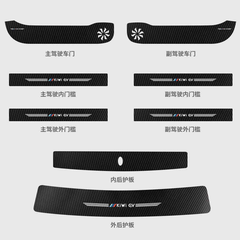 Baojun kiwi EV (carbon fiber black) (door, sill, rear guard) 8-piece set Baojun kiwi EV (carbon fiber black) (door kick pad) 2-piece set Baojun kiwi