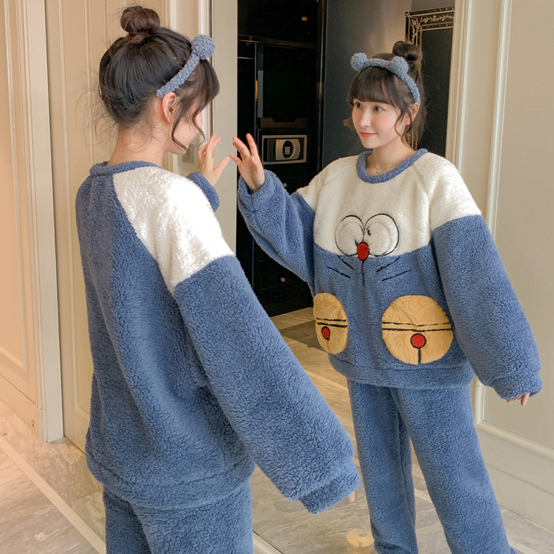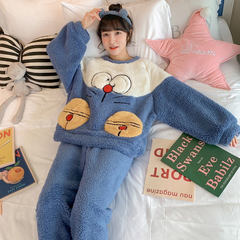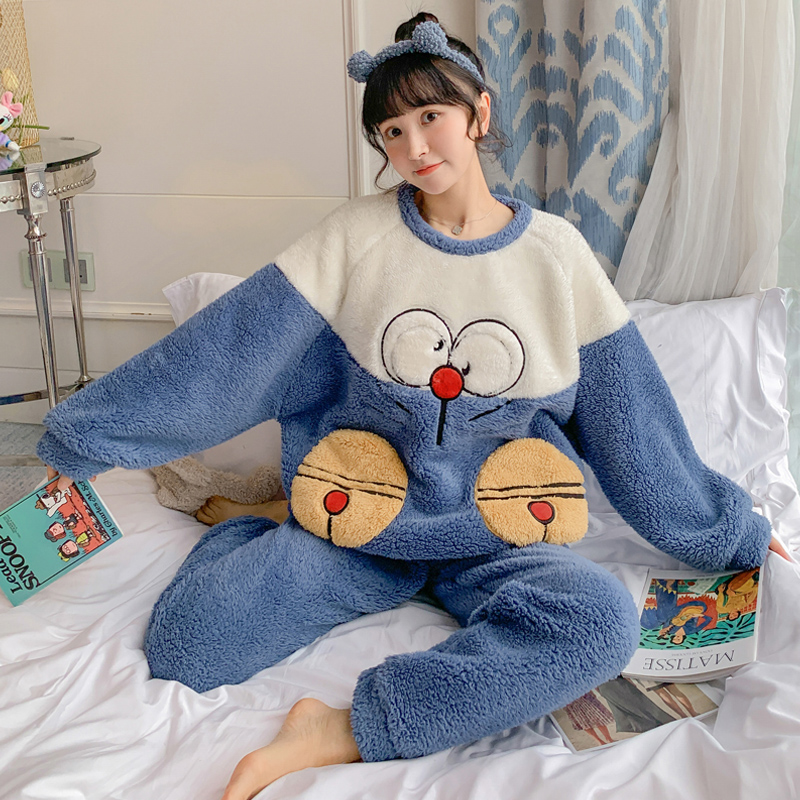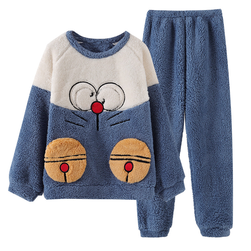 Autumn and winter coral fleece pajamas women's thickened and velvet winter style flannel spring and autumn warm and cute home service suit