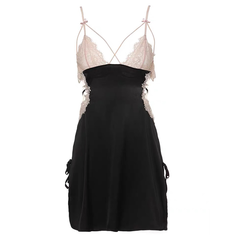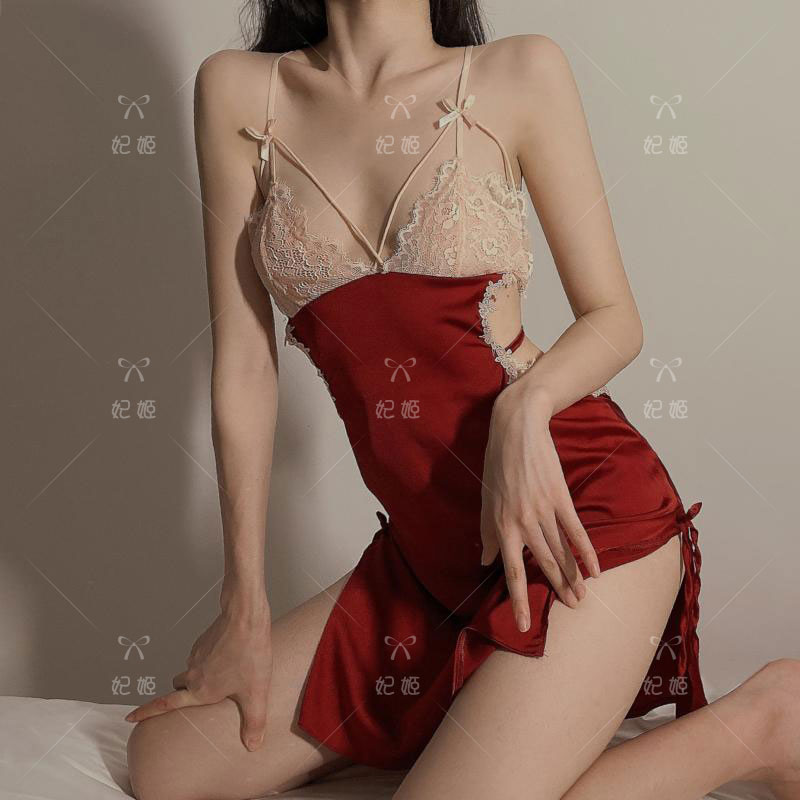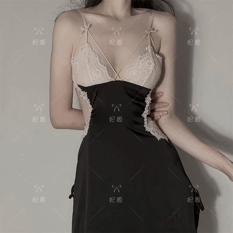 Princess Ji: Sexy seduction Private room Lace Beauty Back Harnesses Sleeping Dress Spring Autumn women Tempting Hot Flirting Suit