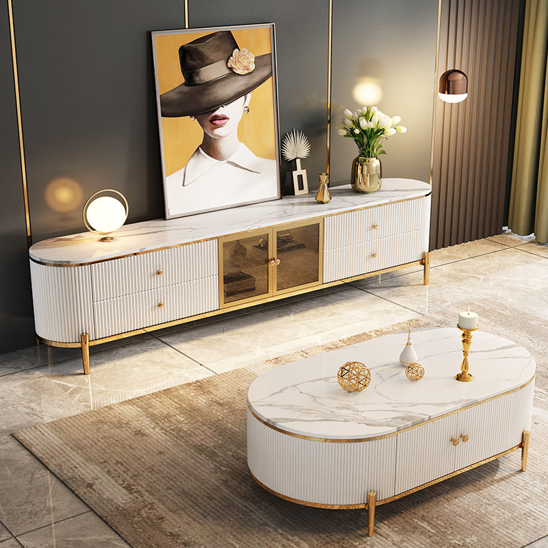 Nordic slate light luxury TV cabinet advanced living room small apartment modern minimalist bedroom white glass door storage cabinet