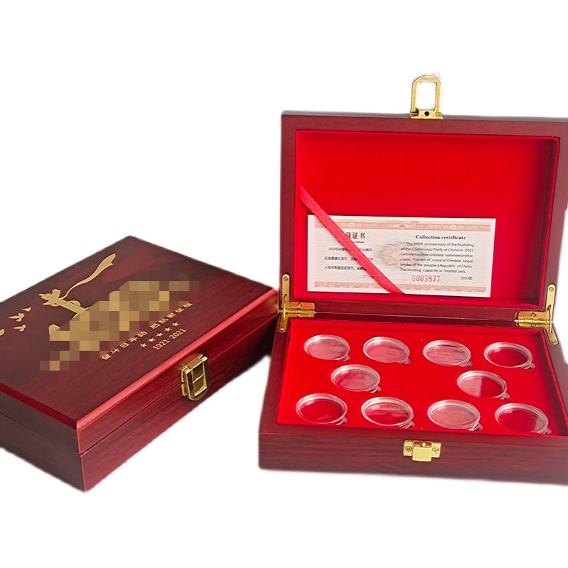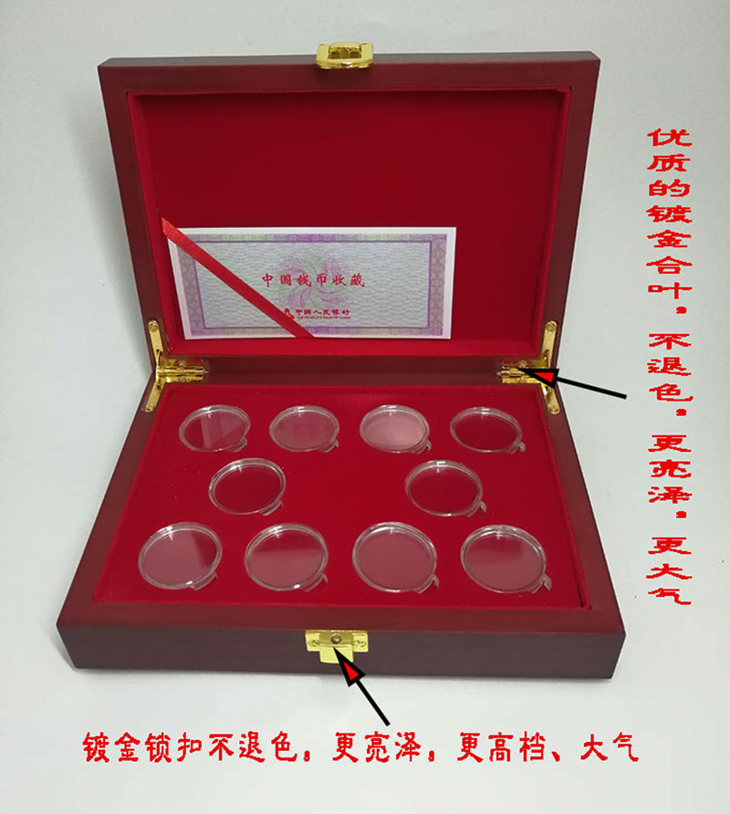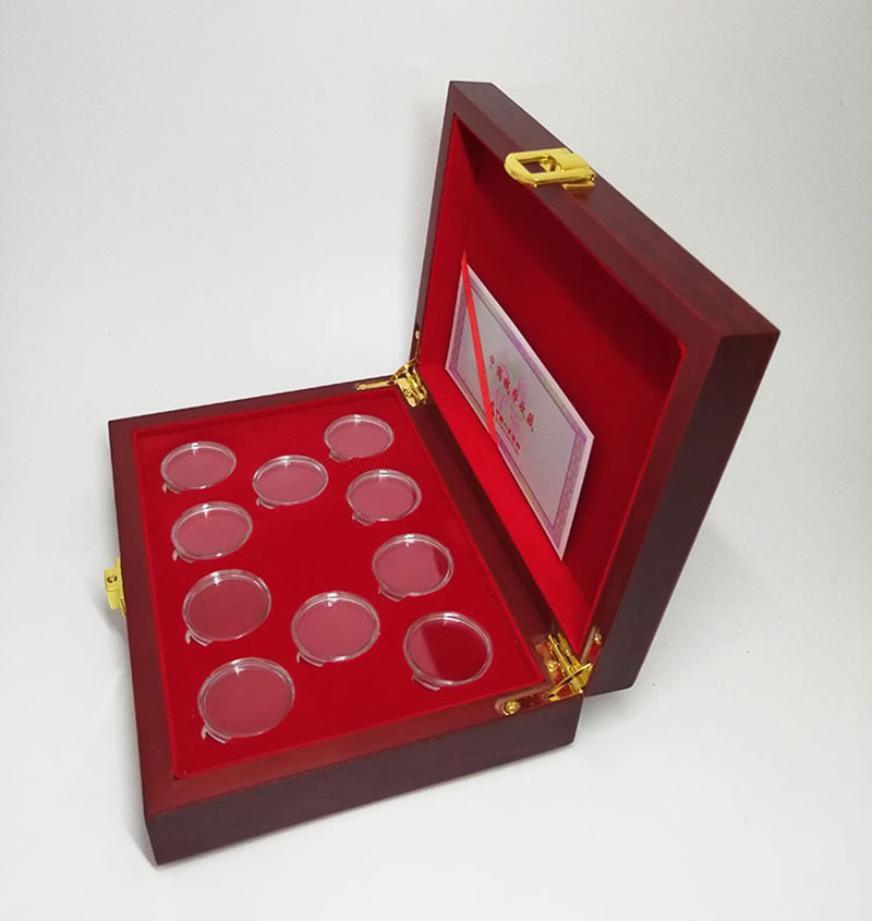 10 Loaded Commemorative Coins Collection Boxes 27mm10 Yuan Coins Protection Box Numismatic Gift Box Containing ten Loaded Wooden Boxes