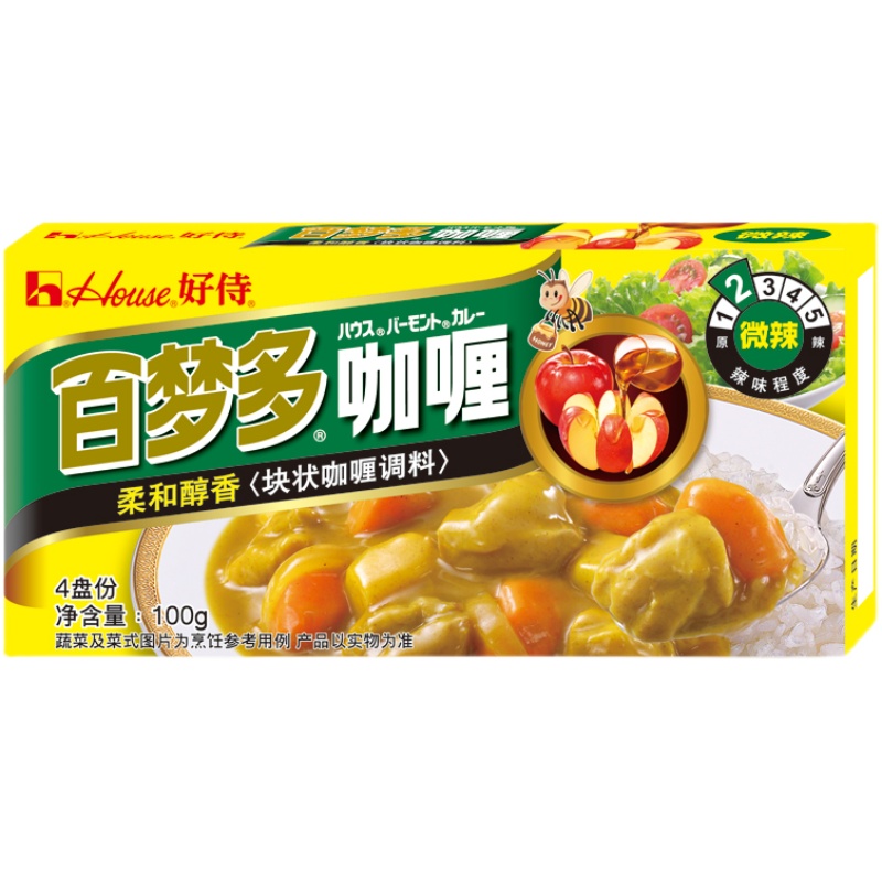 Good waiter 100 Dreamwork curry block slightly spicy 100g * 4 boxes commercial Japanese seasoning yellow gry powder sauce more than 100 dream home