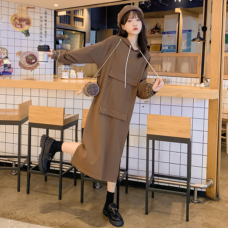 Autumn and winter new Korean version of large size maternity clothes loose long version padded velvet vests foreign style knee-high dress tide