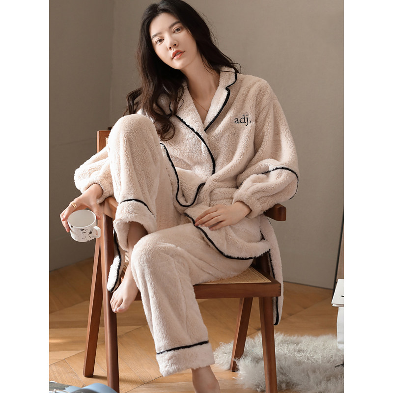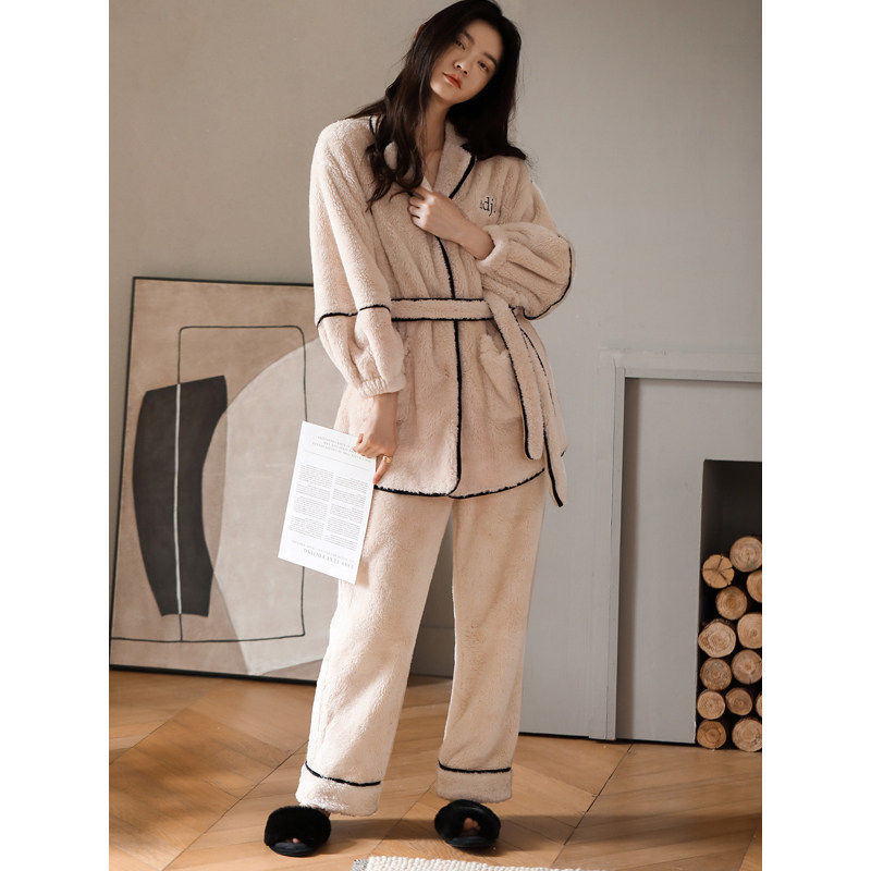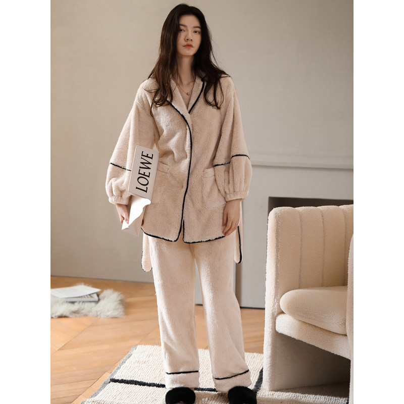 Coral Suede Pajamas Woman Autumn Winter Korean Version Cardiovert Women's Thickened and Velvet Warm Flannel Suede Two-piece Suit