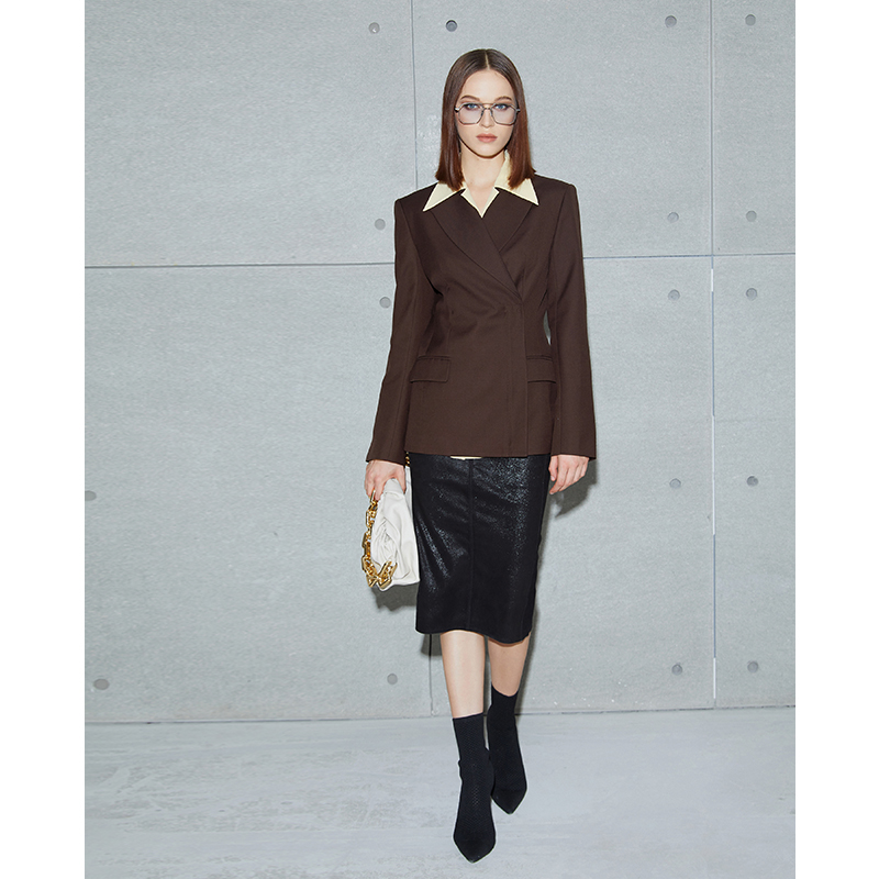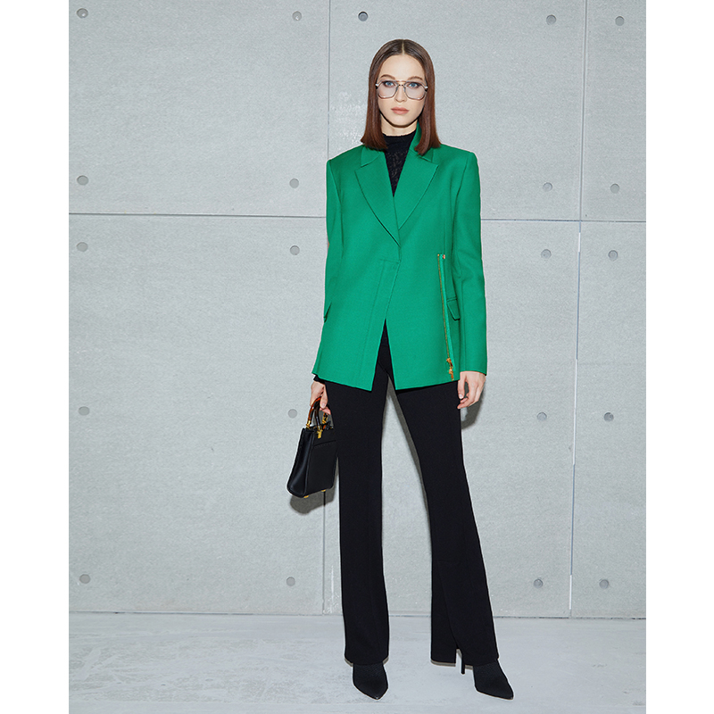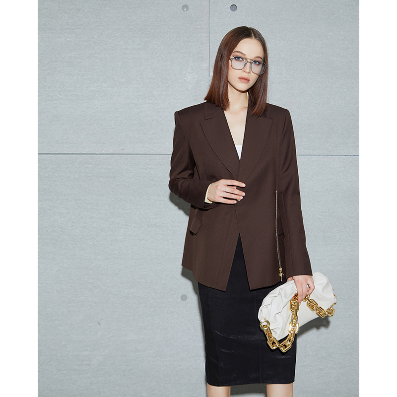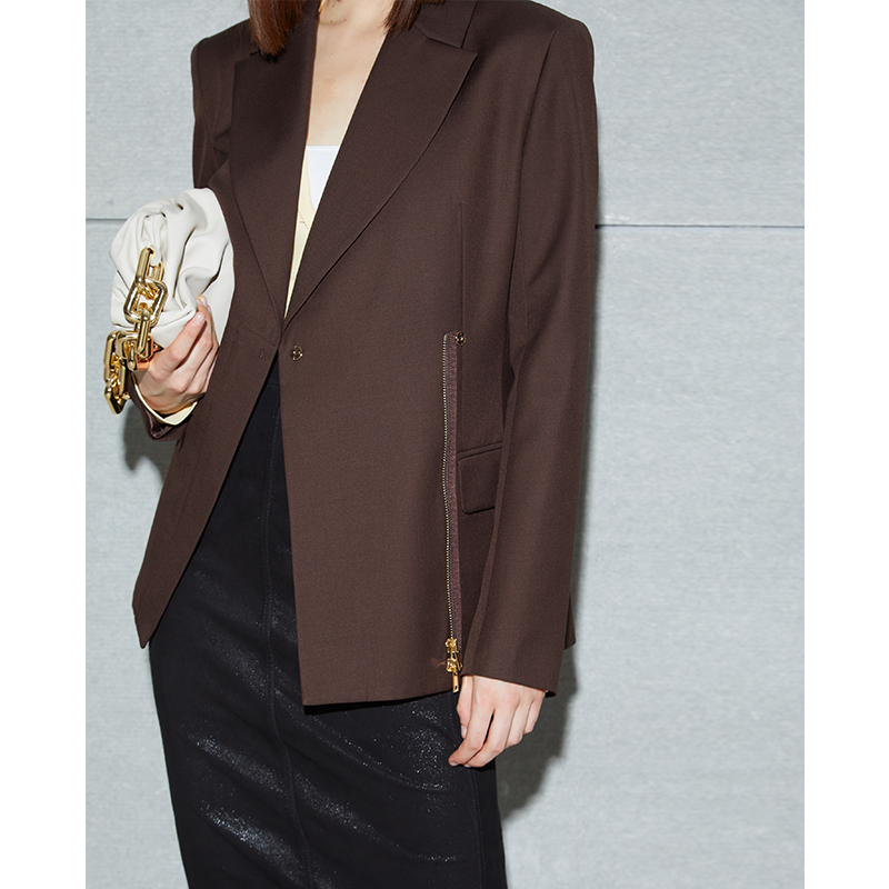 Z Boss Gas Field Spill Wool of wool Gas Short style Body Single Pull Chain Straight Barrel Mansuit Tailoring Coat Woman