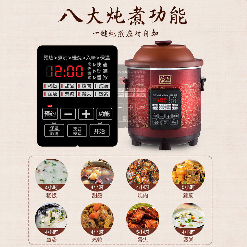 Yili 800A 7 5 liters large-capacity purple casserole electric stew pot automatic stew soup, porridge, stewed meat porridge pot