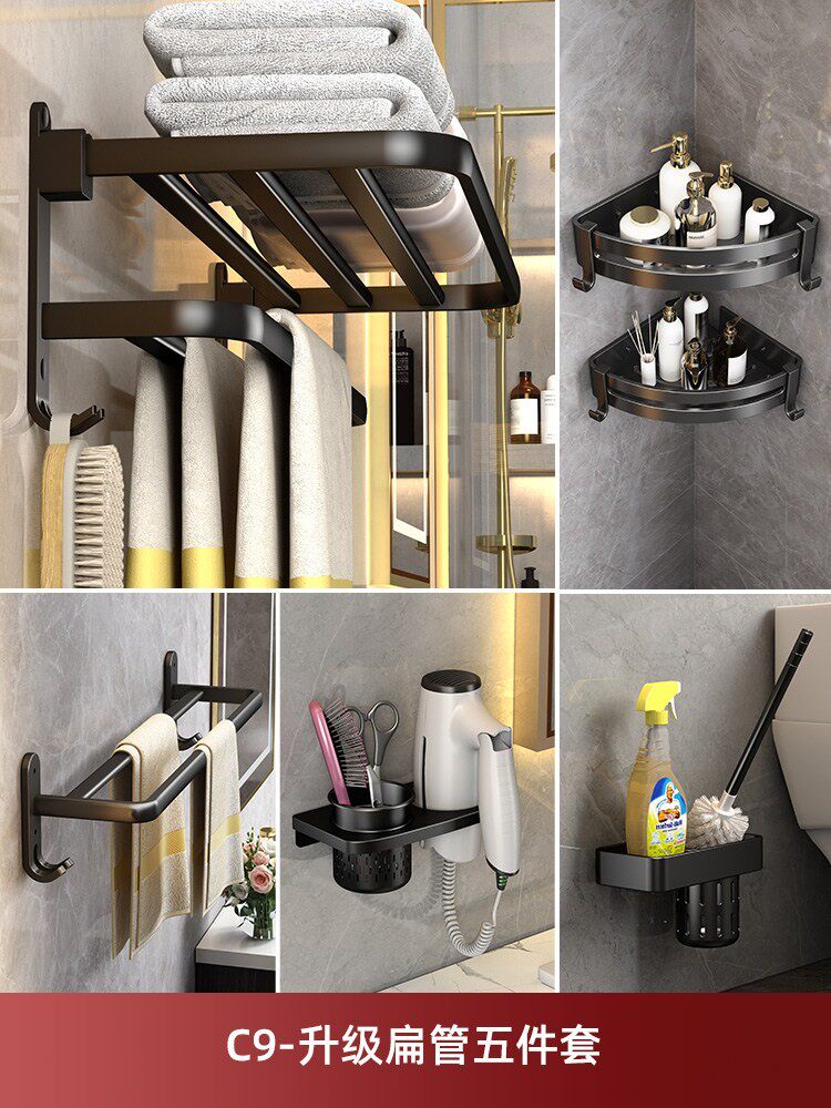 Towel Rack Free Punch Makeup Room Bathroom Shelf Wall-mounted Light Lavish Bath Towels Toilet Pendant Shelf Towel Rod