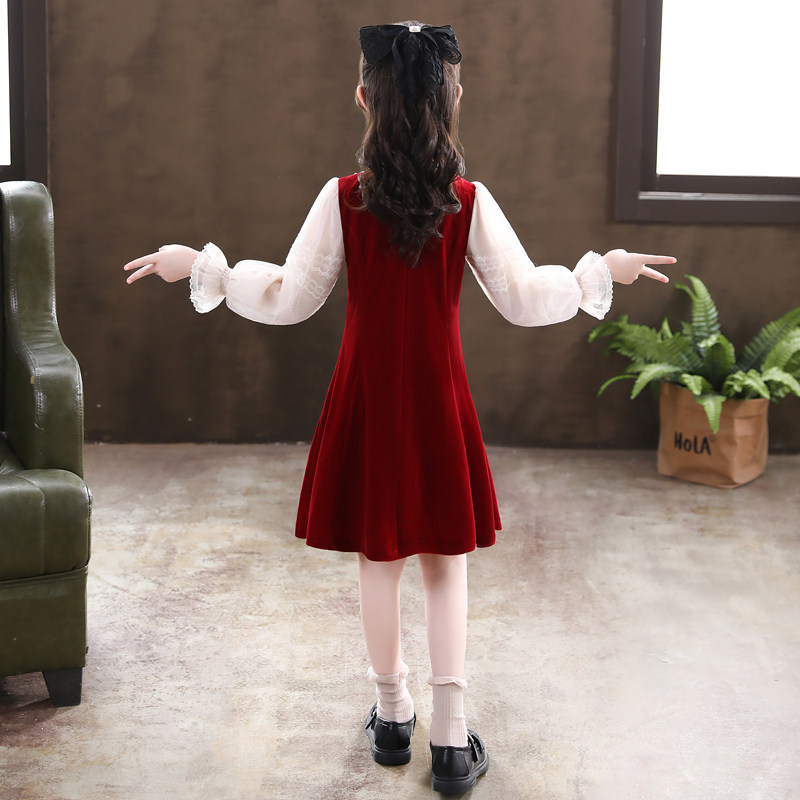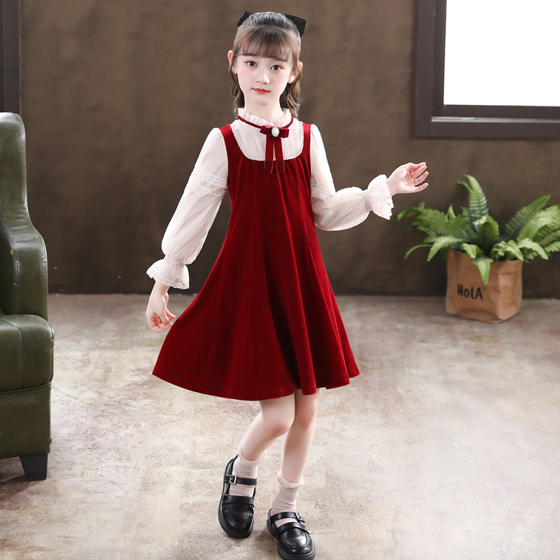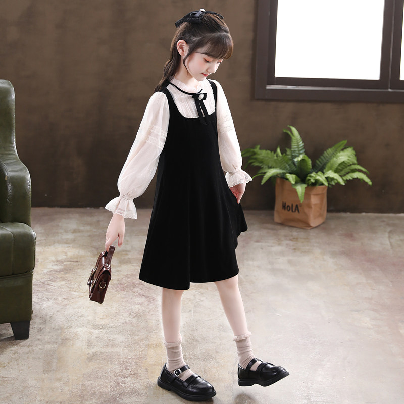Girl Foreign Dress Spring Autumn 2022 New Girl Han Edition Foreign Pie Princess Skirt Autumn Winter Children's Dress Dresses Spring