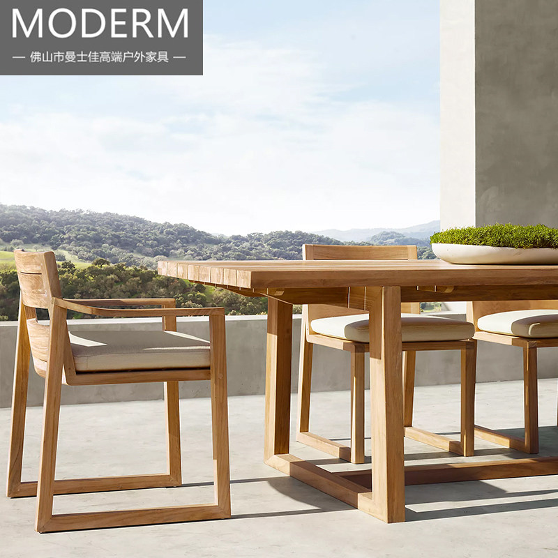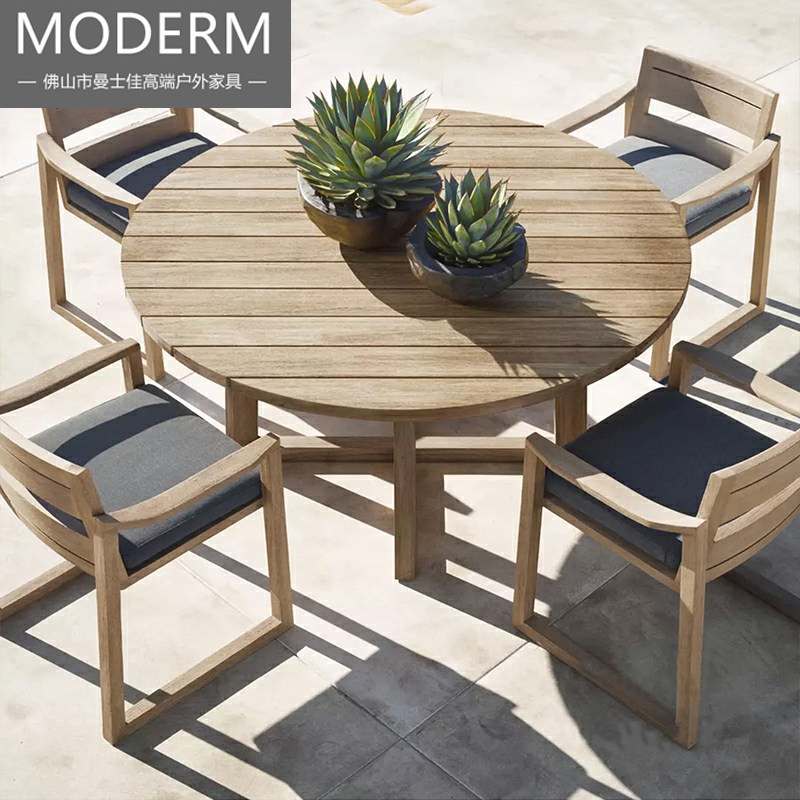 Outdoor teak table and chairs outdoor terrace garden for old solid wood table and chairs Villa Courtyard Imitation old anti-corrosive wood dining table and chairs
