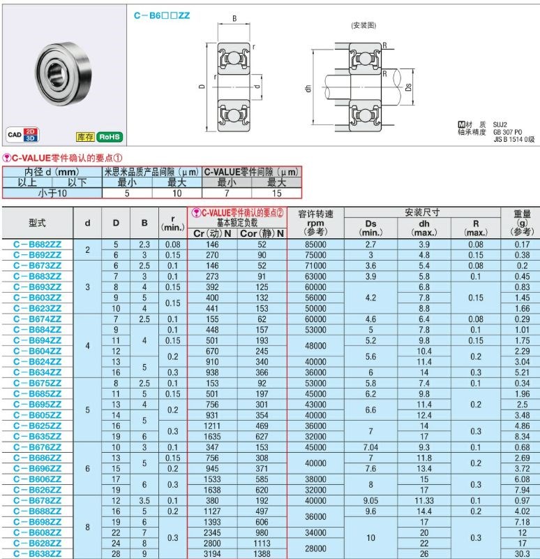 B673ZZ(3*6*2 5)B674ZZ(4*7*2 5)B675ZZ(5*8*2 5)B676ZZ(6*10*3)B
