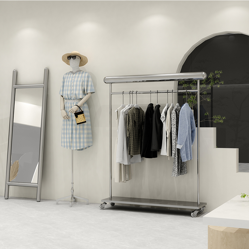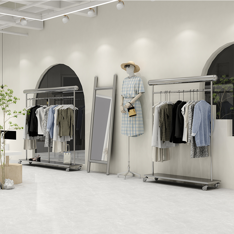 Clothing store display rack with wheels floor-mounted new clothes rail men and women fashion store Nakajima shelf display props