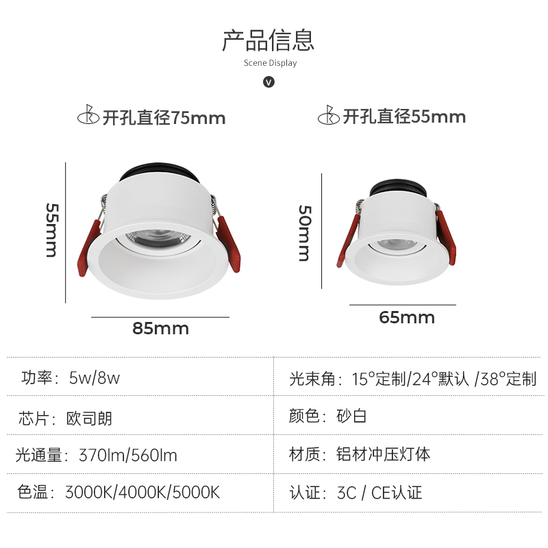 LED spotlight embedded anti-glare home living room without main light lighting ceiling light drilling 55 downlight wall washer light