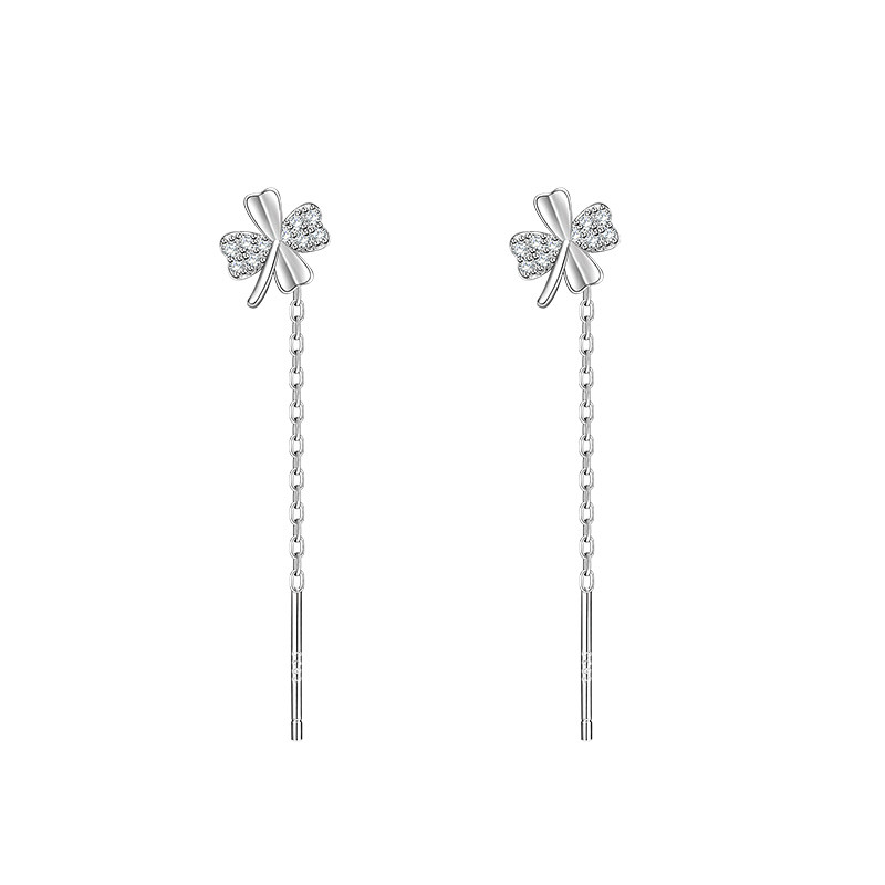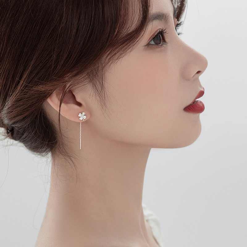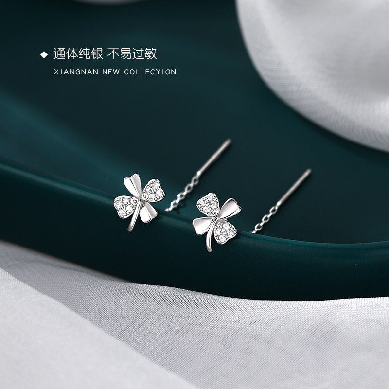 (Alley South) 925 Pure Silver Four-leaf Straw Bracelet 2022 New Tide Women's Ear Pin Small Crowddesign Earrings Summer Season