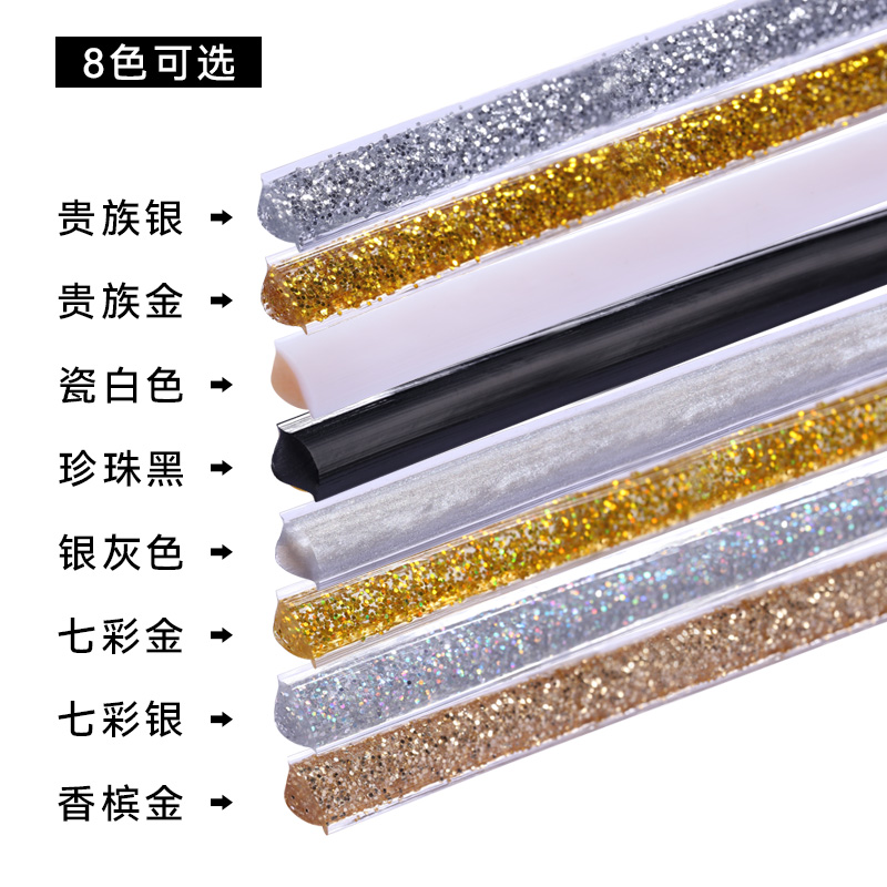 Noble Gold (Length 5 m Width 8 mm) Noble Silver (Length 5 m Width 8 mm) Champagne Gold (Length 5 m Width 8 mm) White Porcelain (Length 5 m Width 8 mm) Pearl Black (Length 5 m Width 8 mm) Silver Grey (Length 5 m Width 8 mm) Colorful Gold (Length 5 m Width 8 mm) Colorful Silver (Length 5 m Width 8 mm) Pearl Black (Length 5 m Width 15 mm) Noble Silver (Length 5 m Width 15 mm) Porcelain White (Length 5 m Width 15 mm) Noble Gold (Length 5 m Width 15 mm) Noble Gold (Length 5 m Width 15 mm)