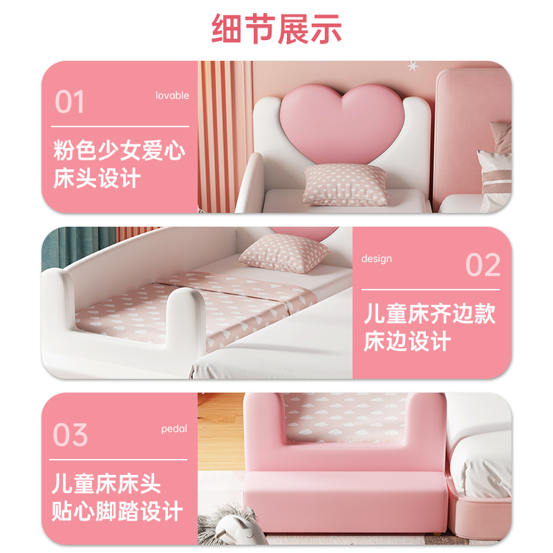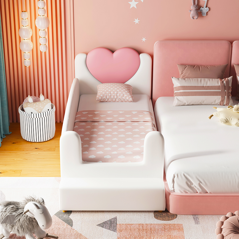 Solid wood children's bed with guardrail small bed baby baby girl princess bed single bed side bed widened stitching big bed