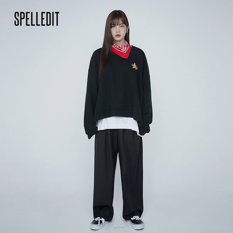 SPELLEDIT Spring/Summer Rolling Stone Sweater Women's Round Neck Pullover Loose Niche Oversize Lazy Wind Cotton