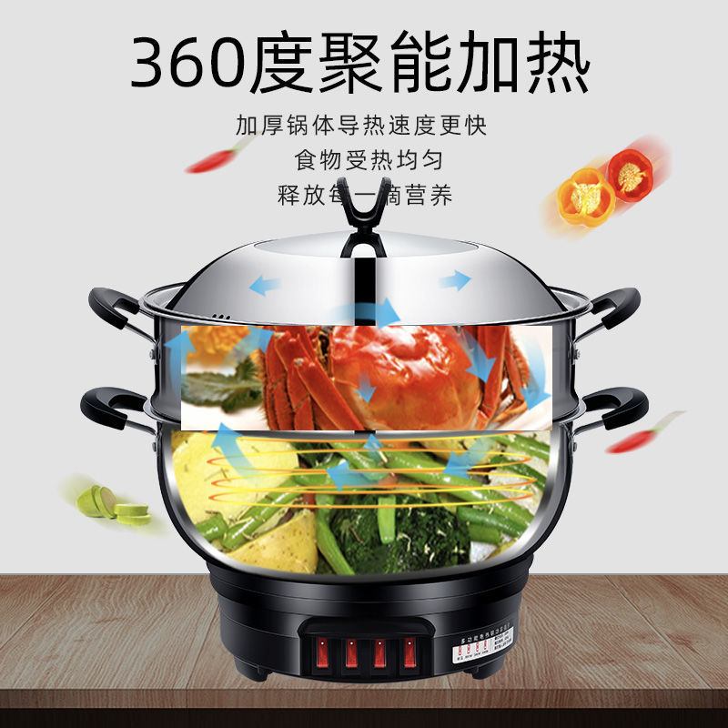Zhoucun all-in-one multi-function electric hot pot household stainless steel electric cooker electric frying pan thickened plug-in multi-use electric steamer