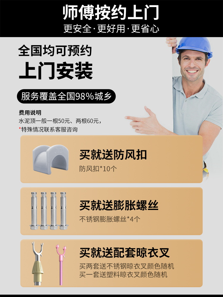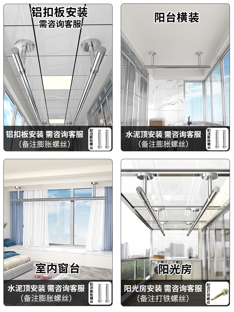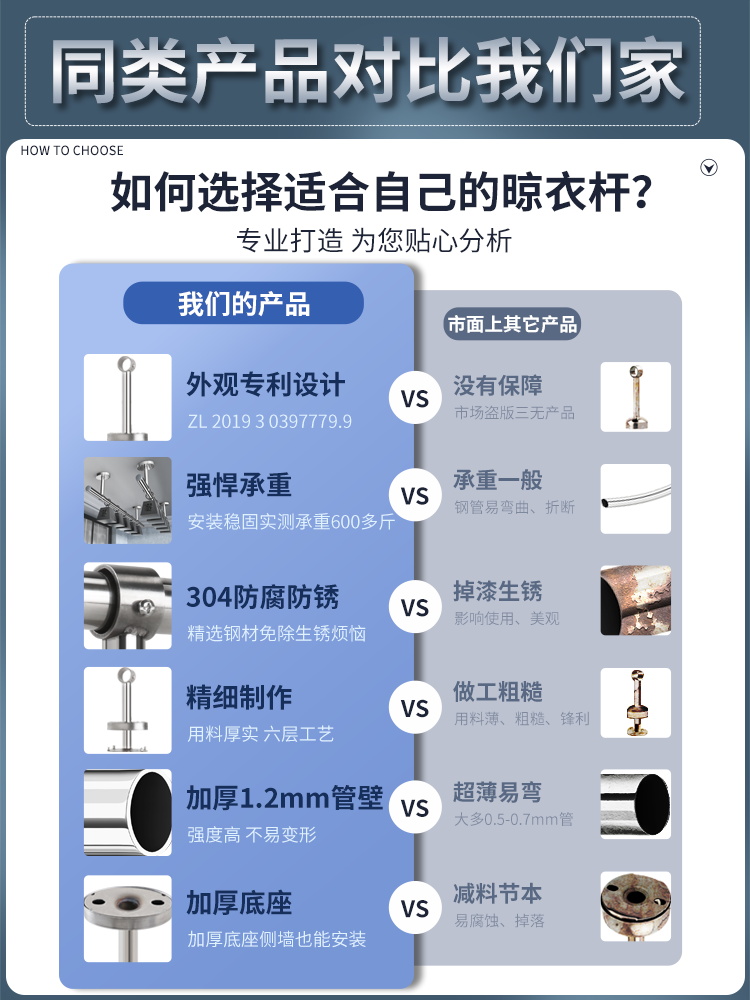 304 clotheshorse 32mm round pipe balcony top fit clothes hanger single pole stationary cool clothes sun-hanger stainless steel-Taobao