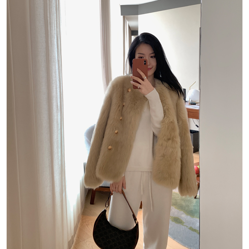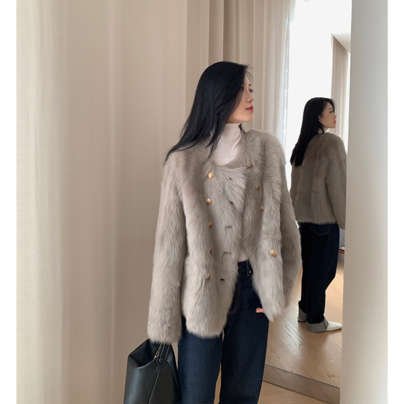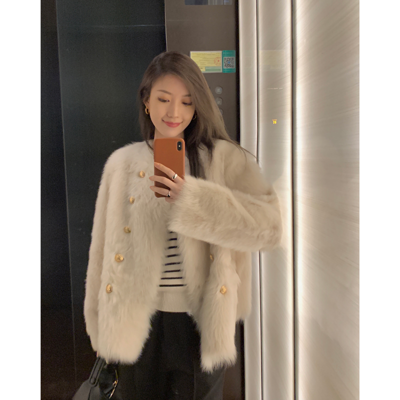 MSBEAST retro light luxury imported Tuscan fur coat women's double-breasted lamb wool coat