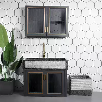 Marble laundry pool outdoor sink stone with washboard integrated courtyard pool with cabinet door full stone wash basin