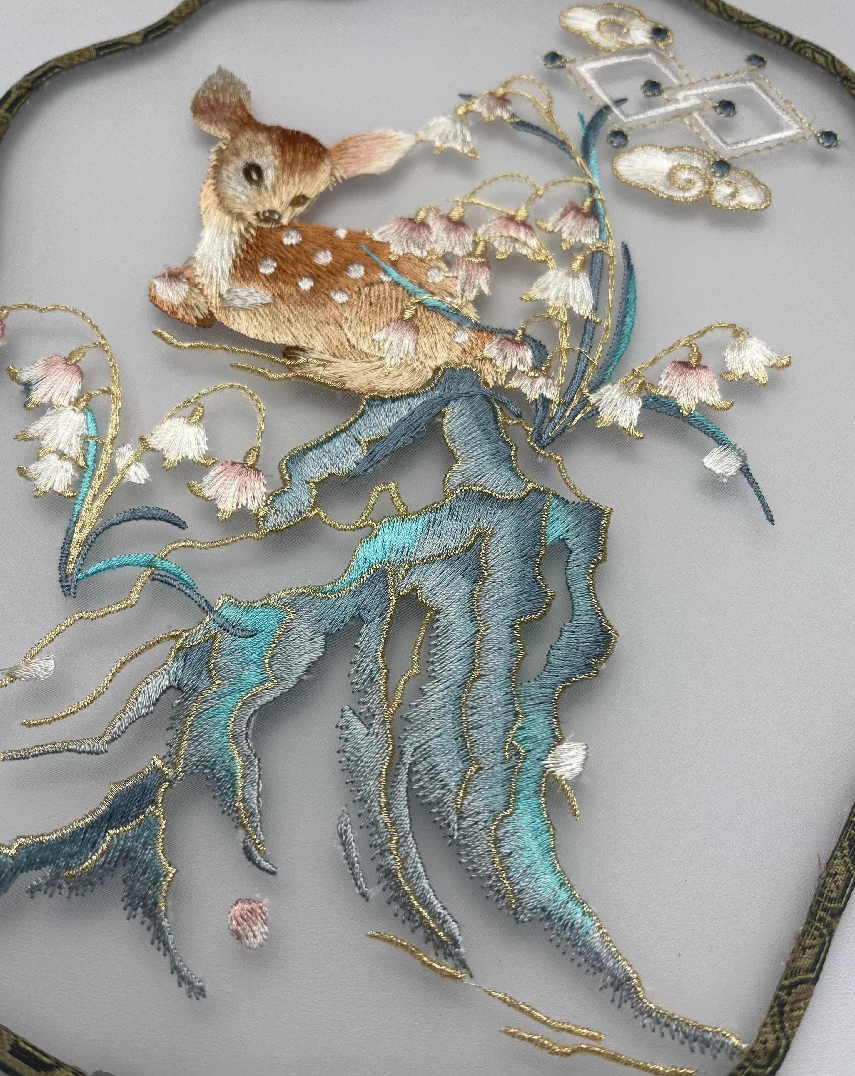 Hang deer embroidery single-dimensional fan Jubilee MountainsCo-famous Han clothing bandrobe Show gift China