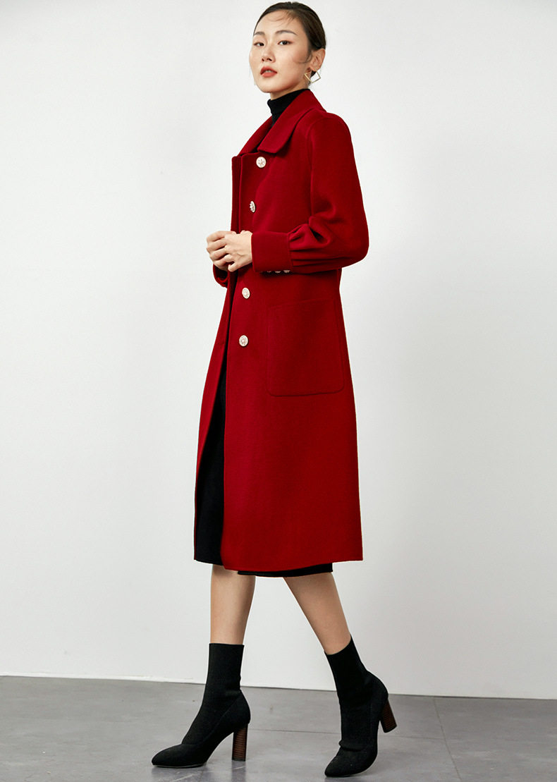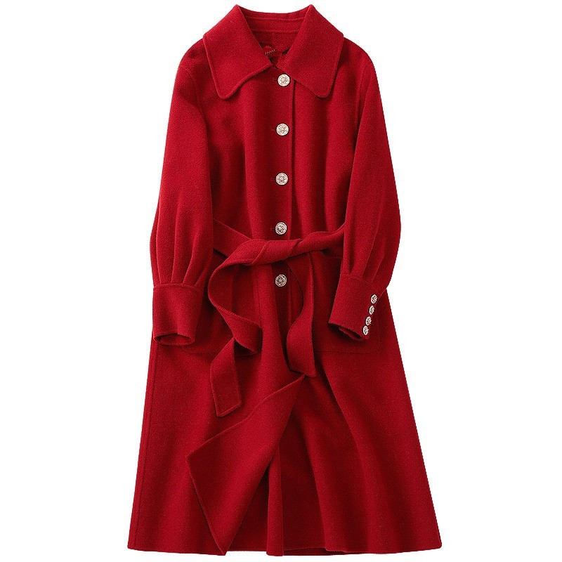 Maj Koce New Year's red high-end red lace-up double-sided cashmere coat temperament retro mid-length woolen coat
