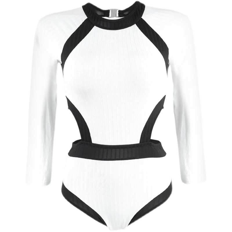 2021 new Korean ins swimsuit even body black white long sleeves Slim Veil Spa Holiday Surf Swimsuit Woman
