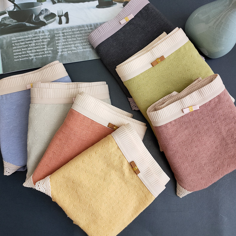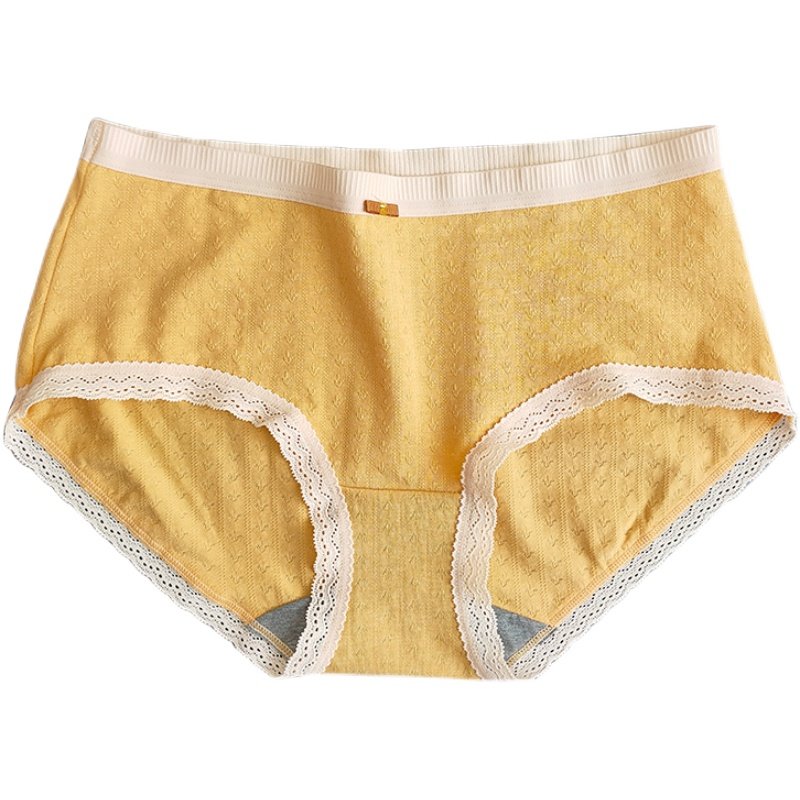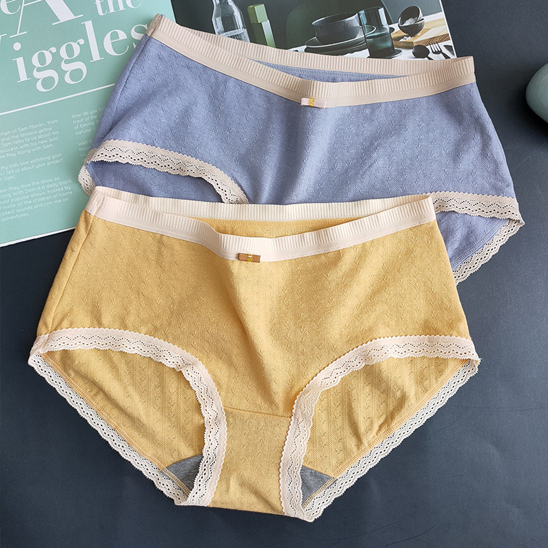Spring and Autumn Caitian panties women's mid-waist Modal cotton solid color lace edge girl graphene pants are comfortable and soft