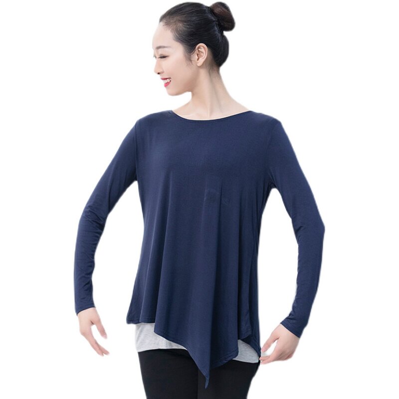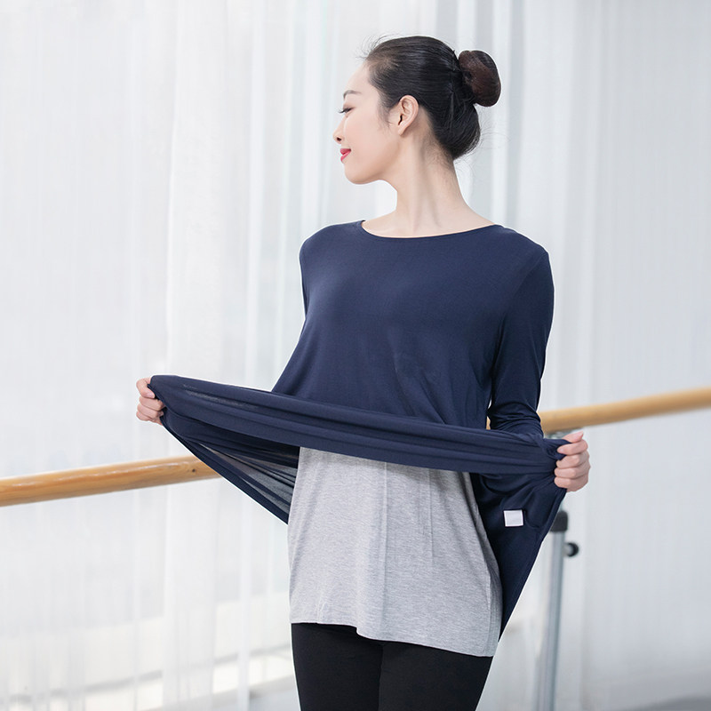 Modern dance practice Gongfu jacket Female autumn-winter thickened Modale fake two loose long sleeves base set training suit