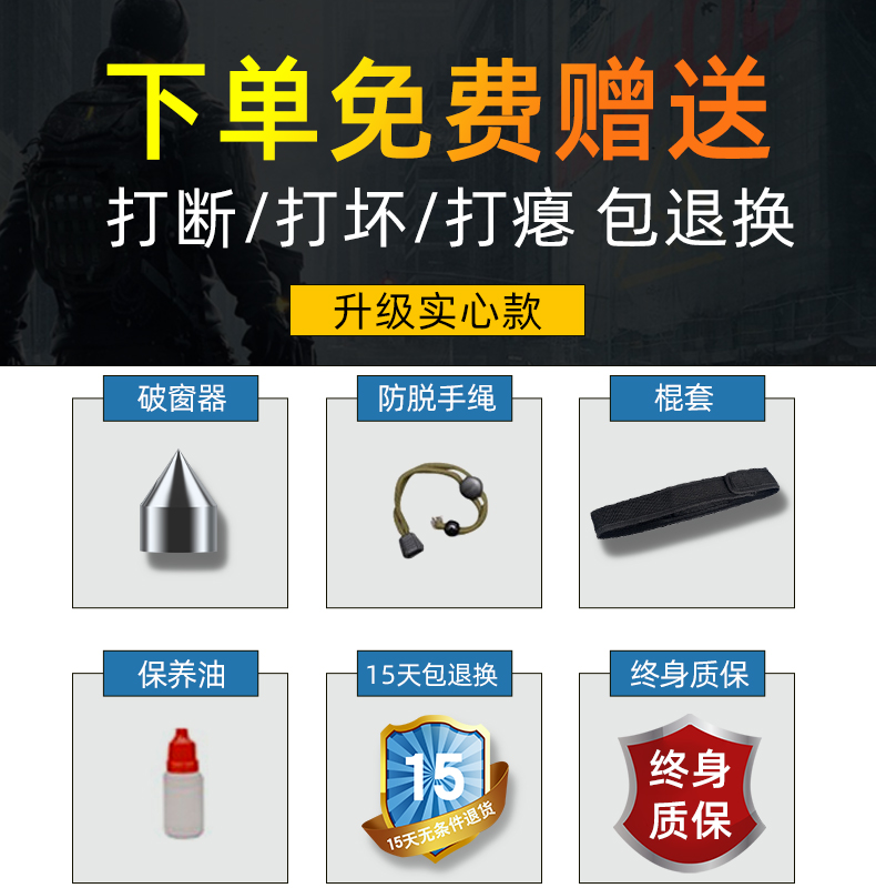360 ° stopper-proof weapon - (long 65cm titanium silver broken window instrumental) 360 ° stoppers for body-proof weapons - (long -65cm titanium black broken window instrumental) composite steel