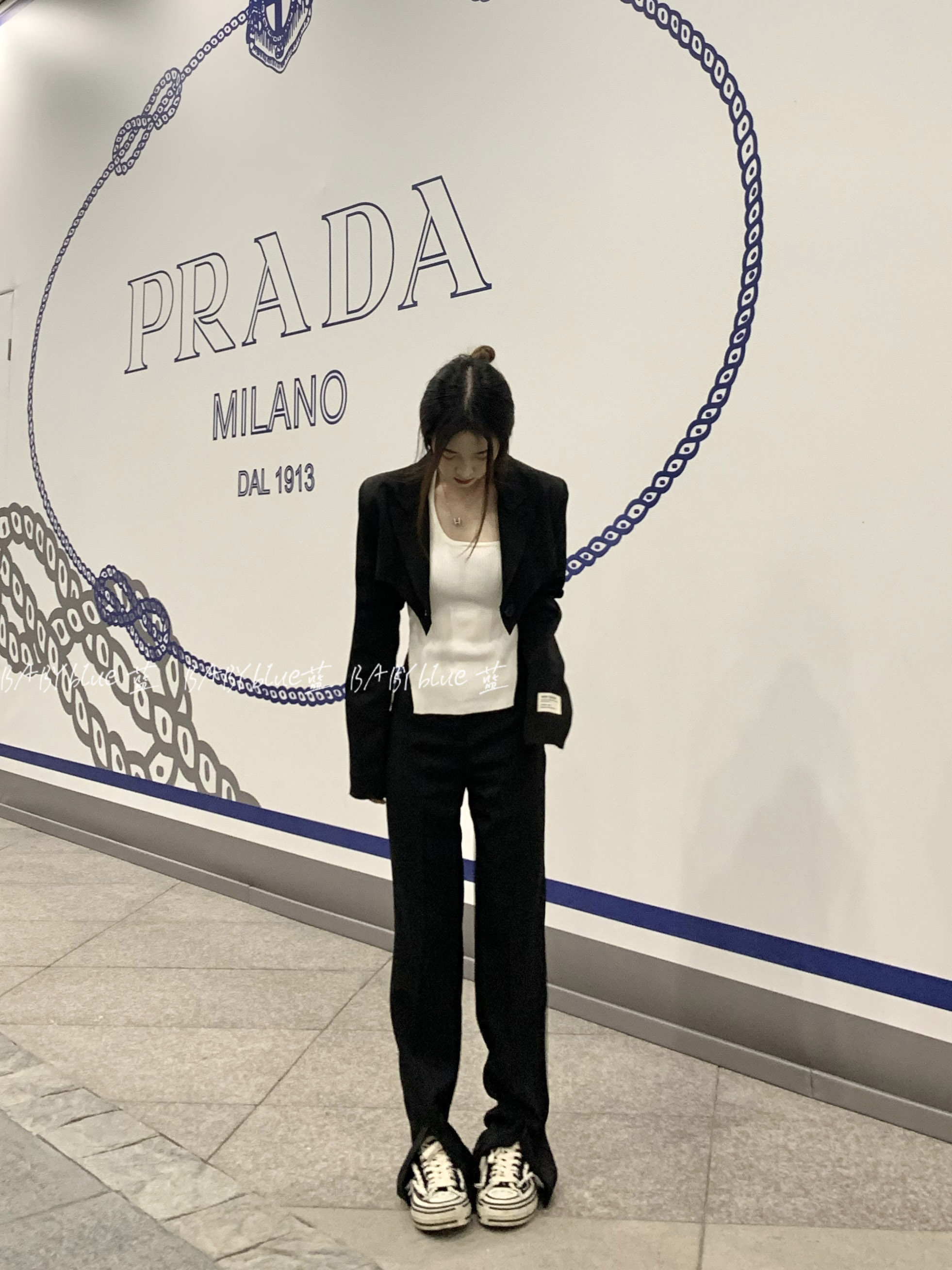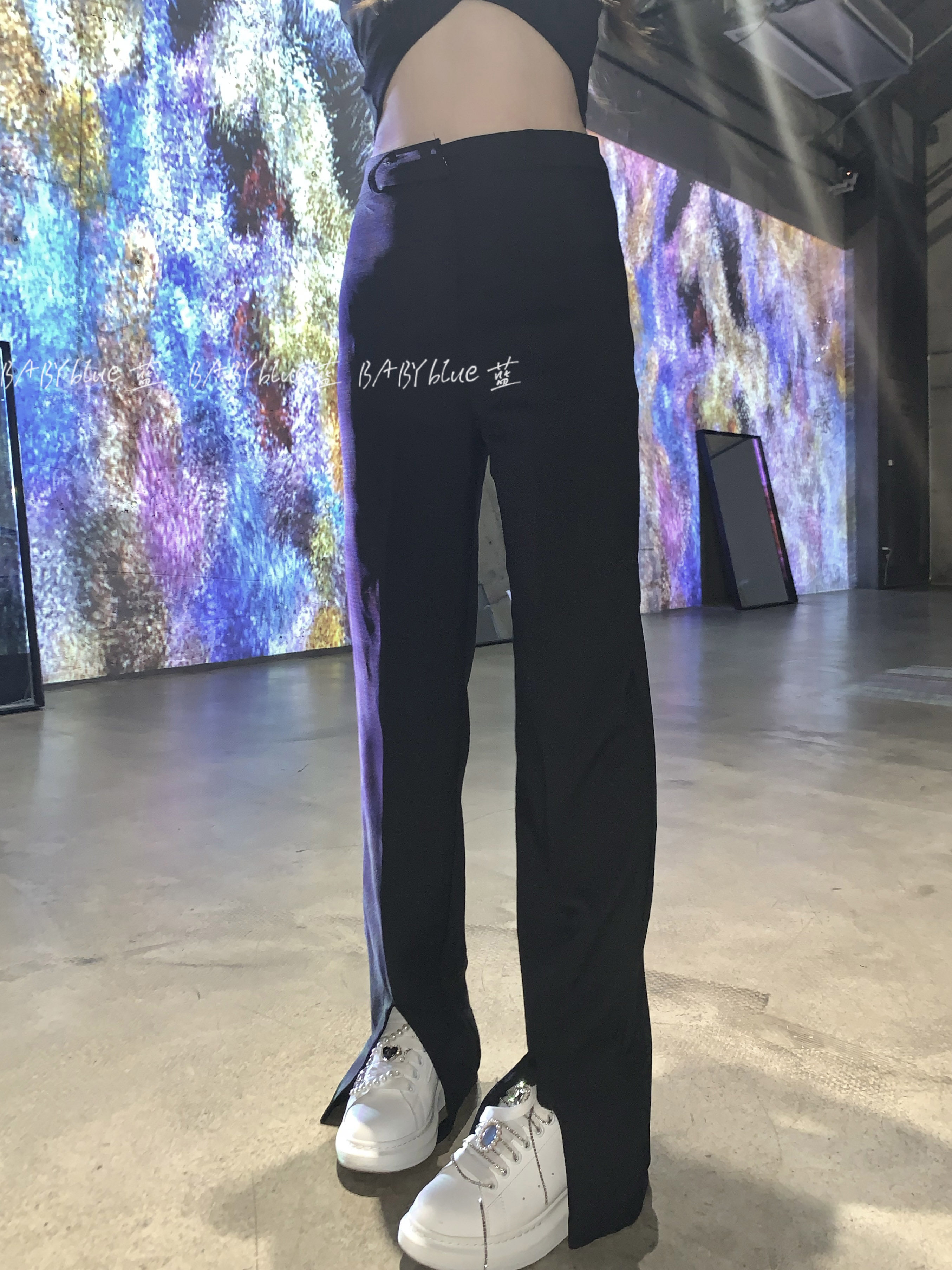 BABYblue (big long leg bi preparation) Sensation Western Dress Pants Woman High Waist Display Slim Straight Cylinder Open Fork Tug Pants Spring Autumn