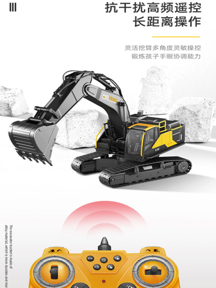Wetten Children Excavator Toy Boys Engineering Car Alloy Remote Control Charging Excavator Electric Excavator