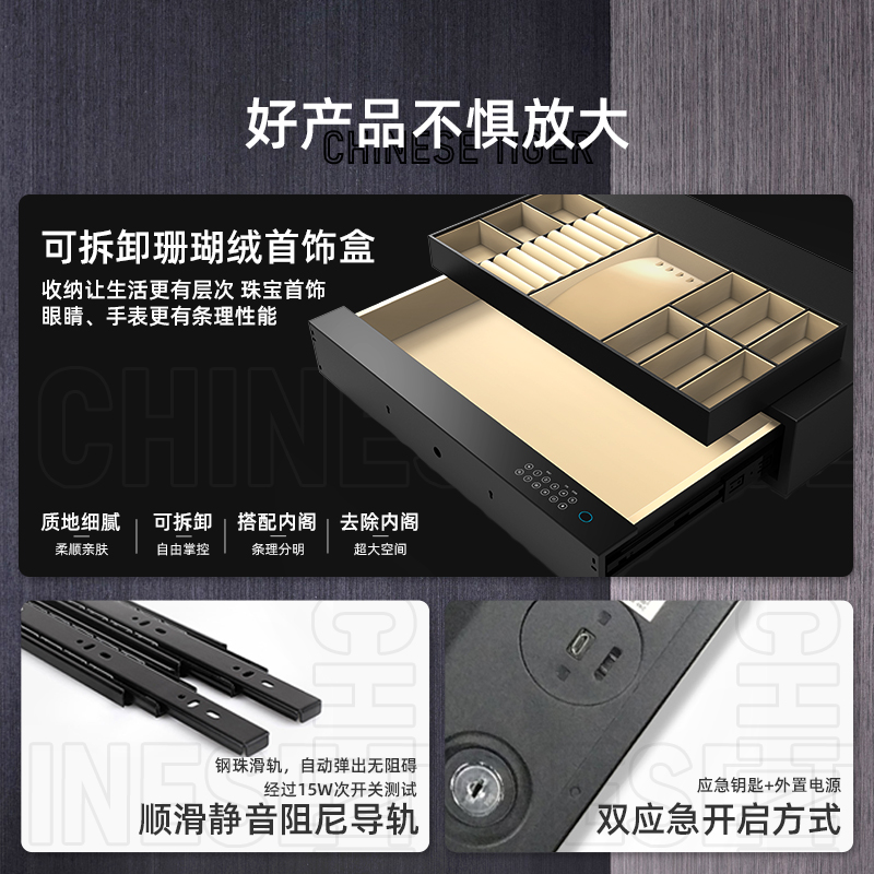 China Tiger Card Drawer Safe Password Draw Fingerprint Home Small full steel burglar-proof invisible headboard Entrance Wardrobe Drawer fingerprint embedded in hidden office Jewelry Safe-Taobao