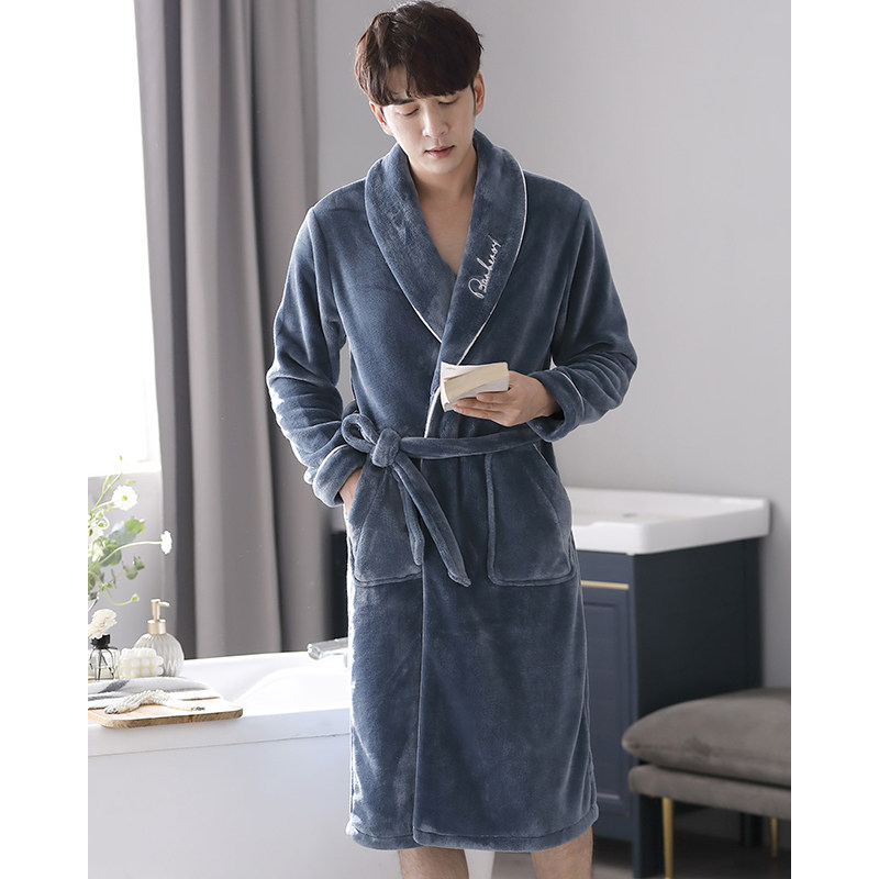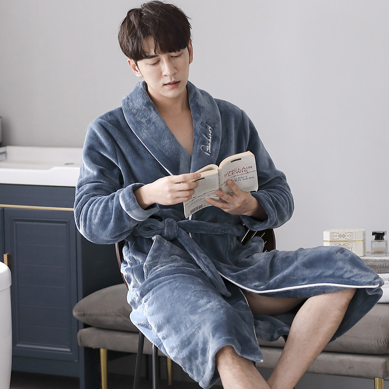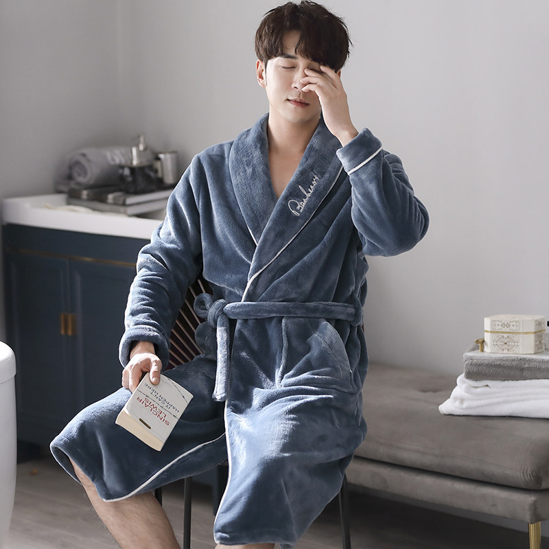 Sleepwear Men Sleep Robes Autumn Winter Style winter Coral Suede Thickened with Flannel Warm Male flannel Long-style bathrobe-Taobao